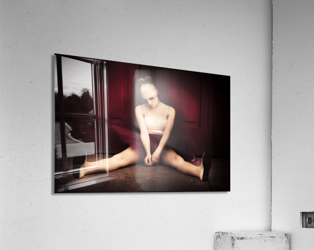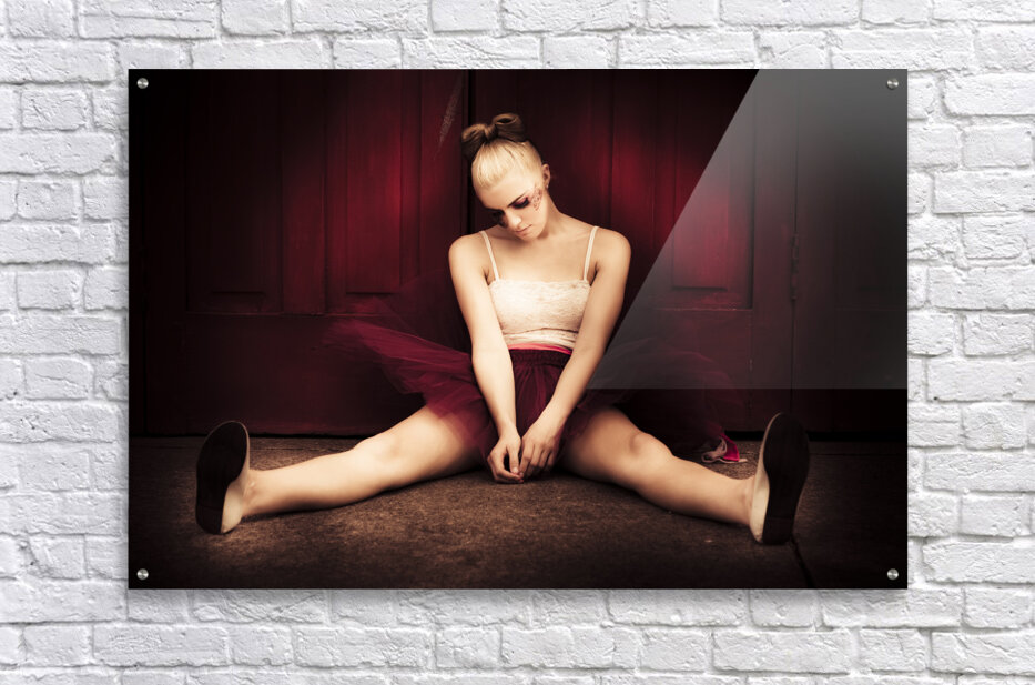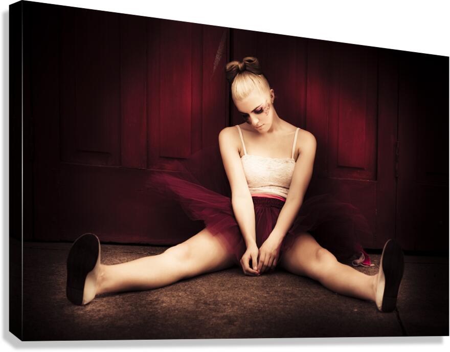 A play in ballet dramatics with performing artist dancer sombring a scene of acting out a last dance