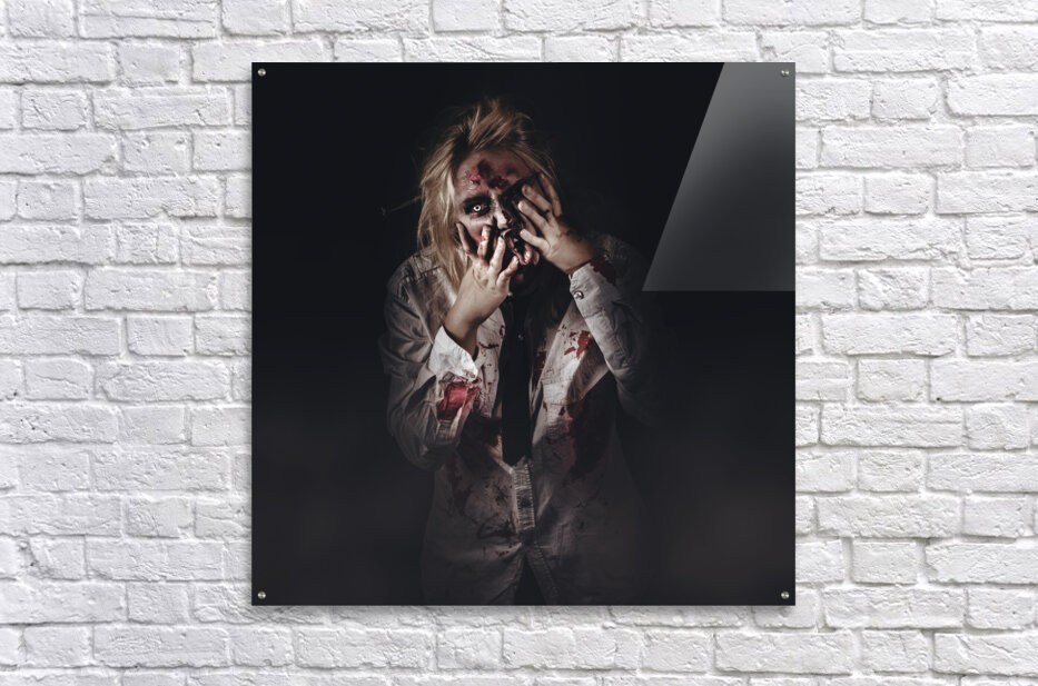 Dark halloween portrait. Scary evil zombie Frame print