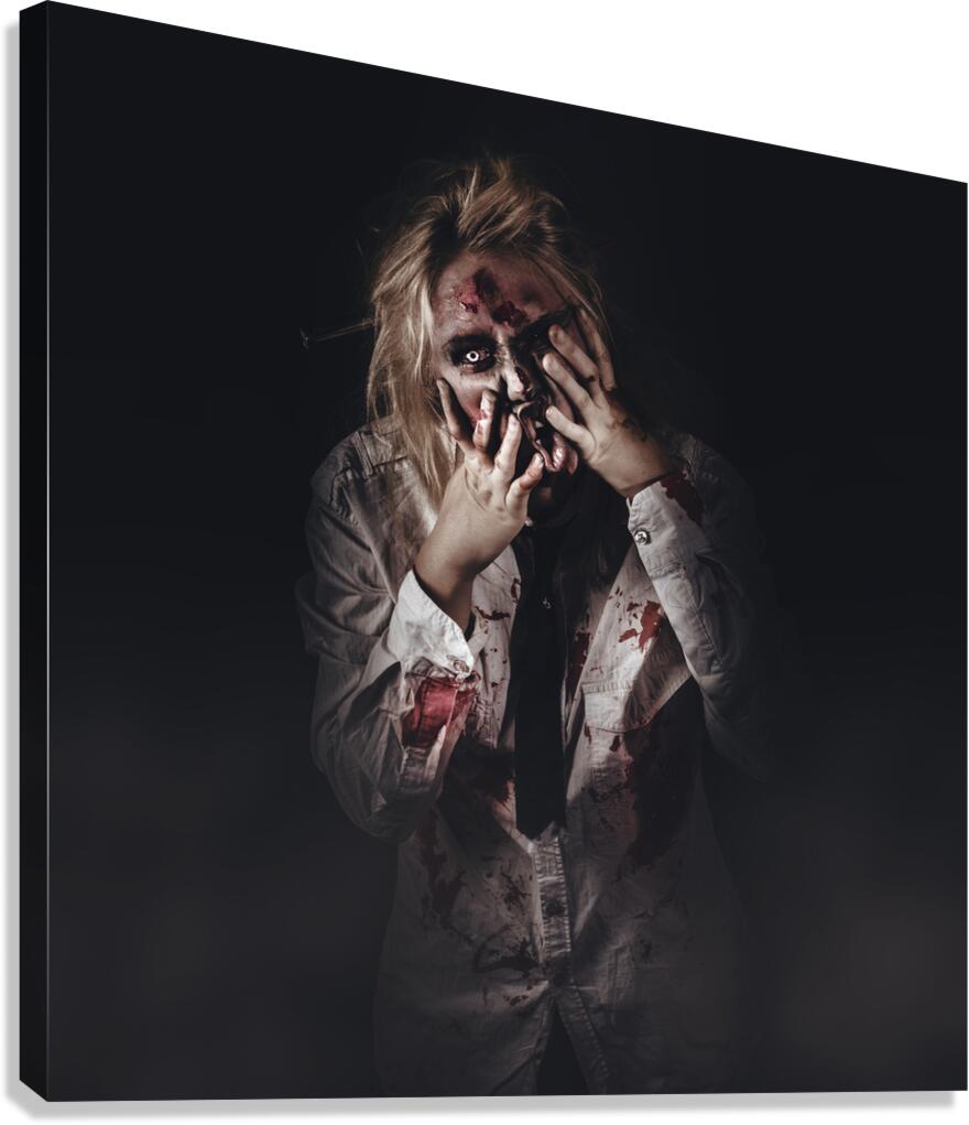 Dark halloween portrait. Scary evil zombie Picture Frame Printing