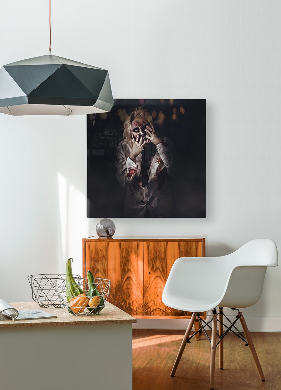 Dark halloween portrait. Scary evil zombie Wood print