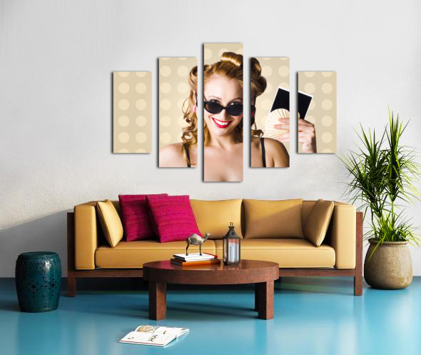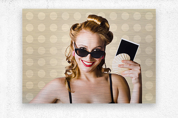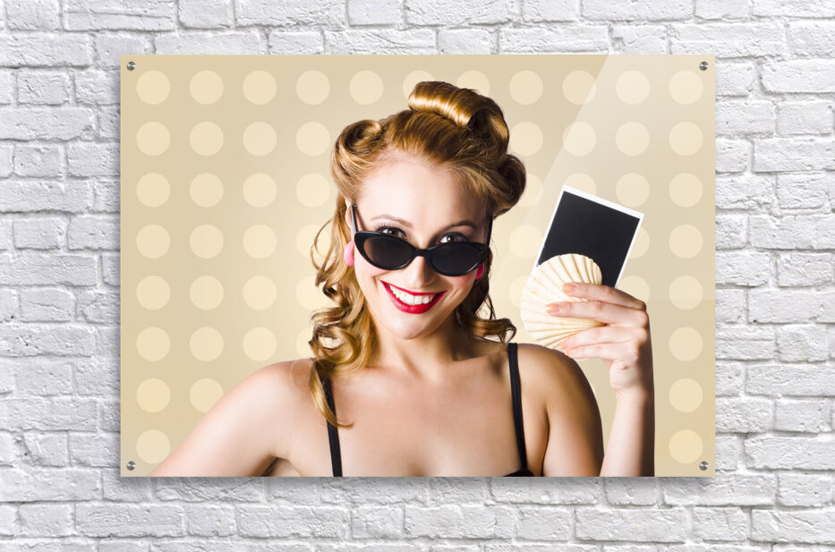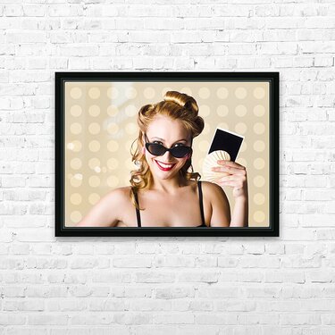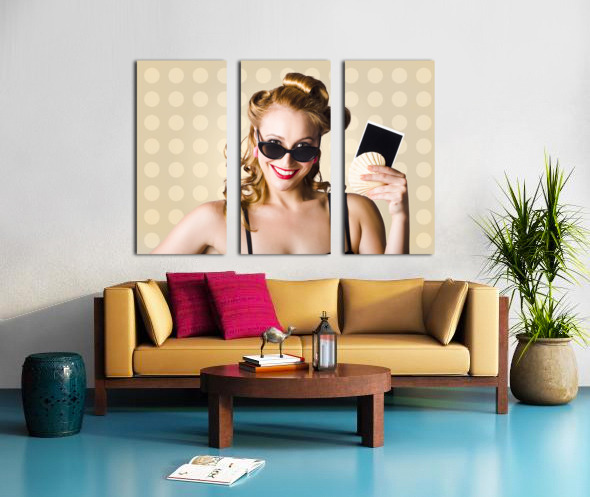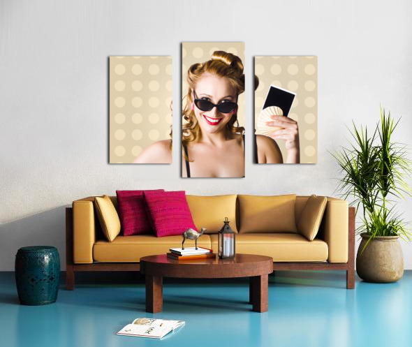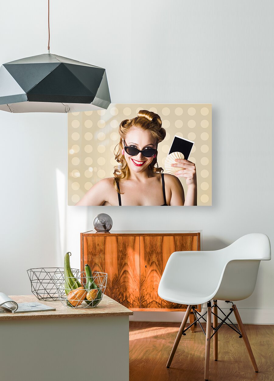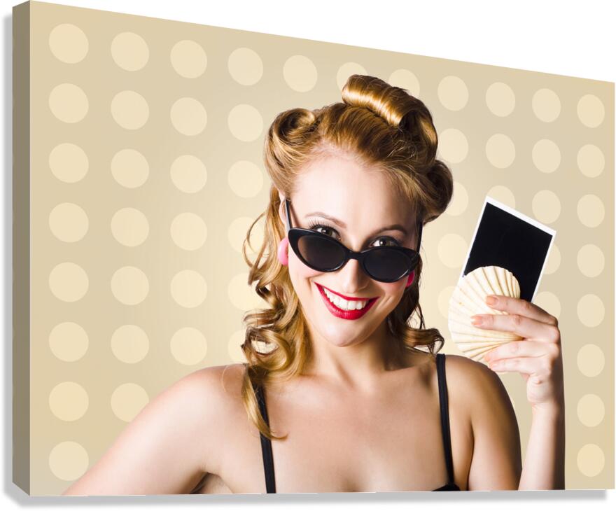 Get this artwork "Pinup Girl Showing World Travel Holiday Photo" in a framed print.