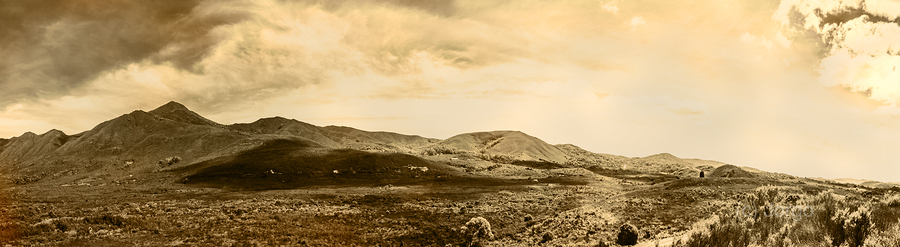 HISTORIC MOUNTAIN LANDSCAPE IN SEPIA TONE