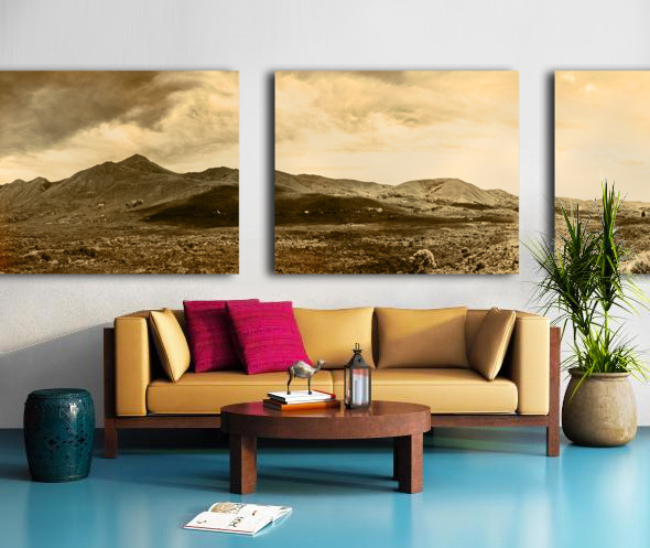 ABOUT THIS ARTWORK: HISTORIC MOUNTAIN LANDSCAPE IN SEPIA TONE