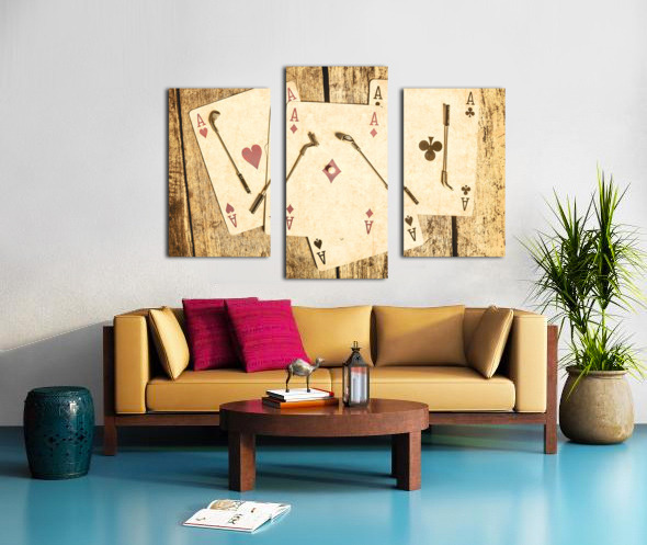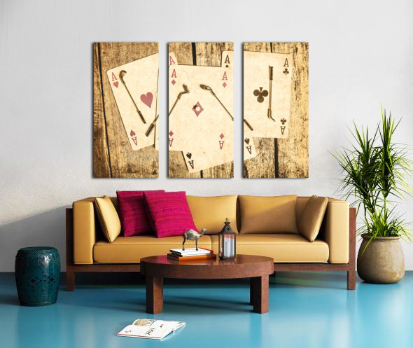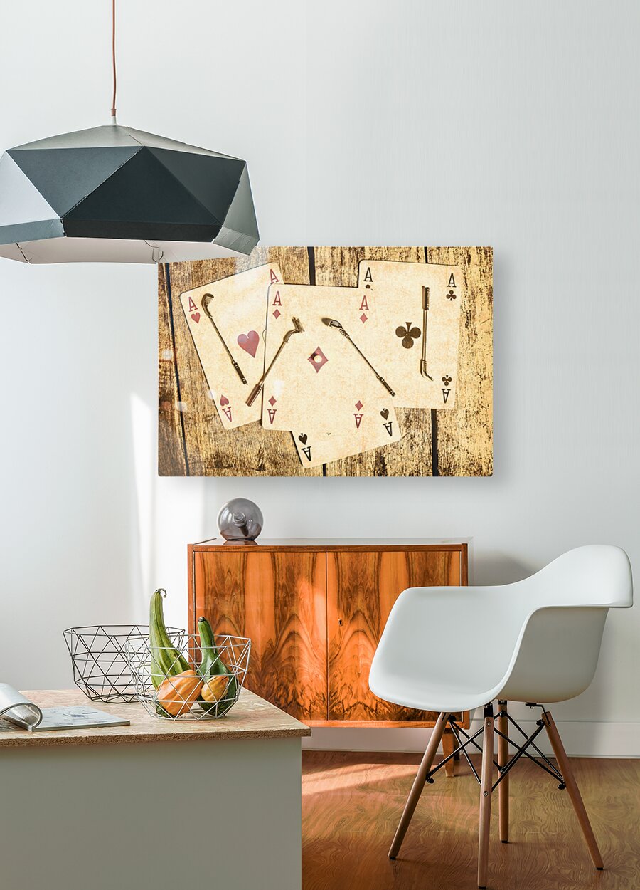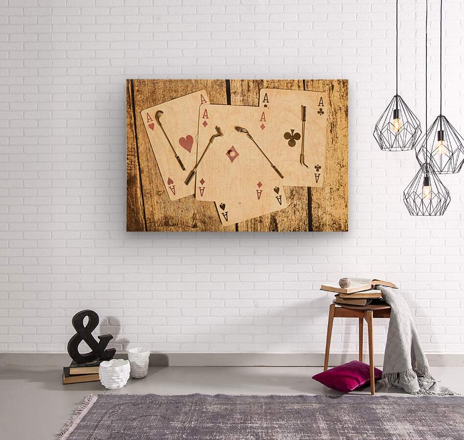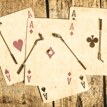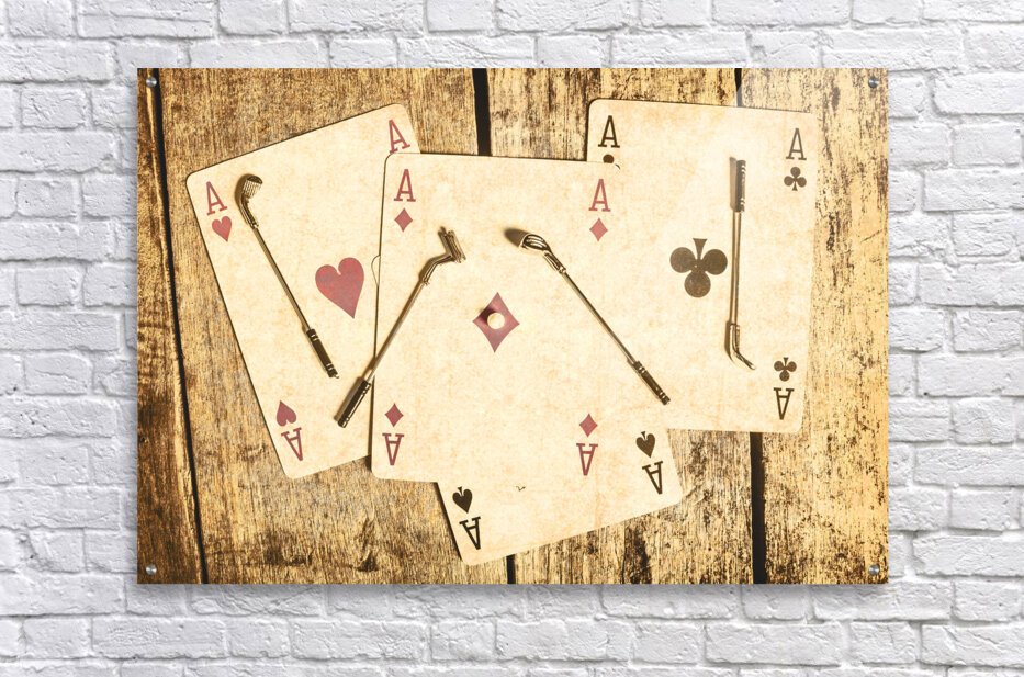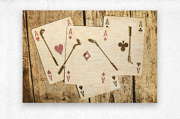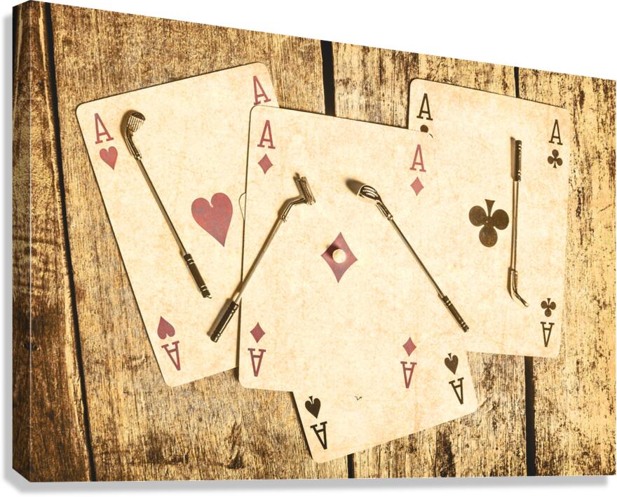 Vintage golf art on a play of winning club odds with a hole in one game. Scorecard of Aces