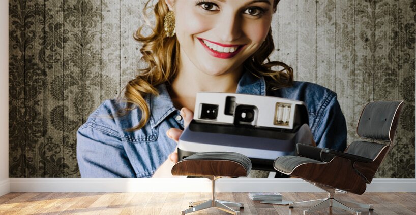 Get this artwork "Smiling Young Vintage Girl Taking Polaroid Photo" in a framed print.