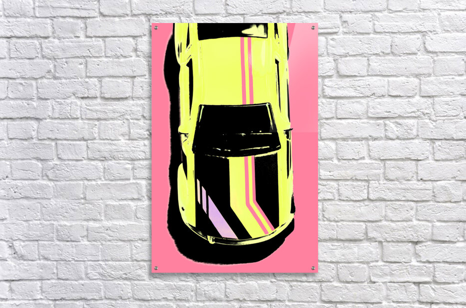 Retro automobile pop art on the hood of a decaled Ford Mustang 2005 model. Musk tang
