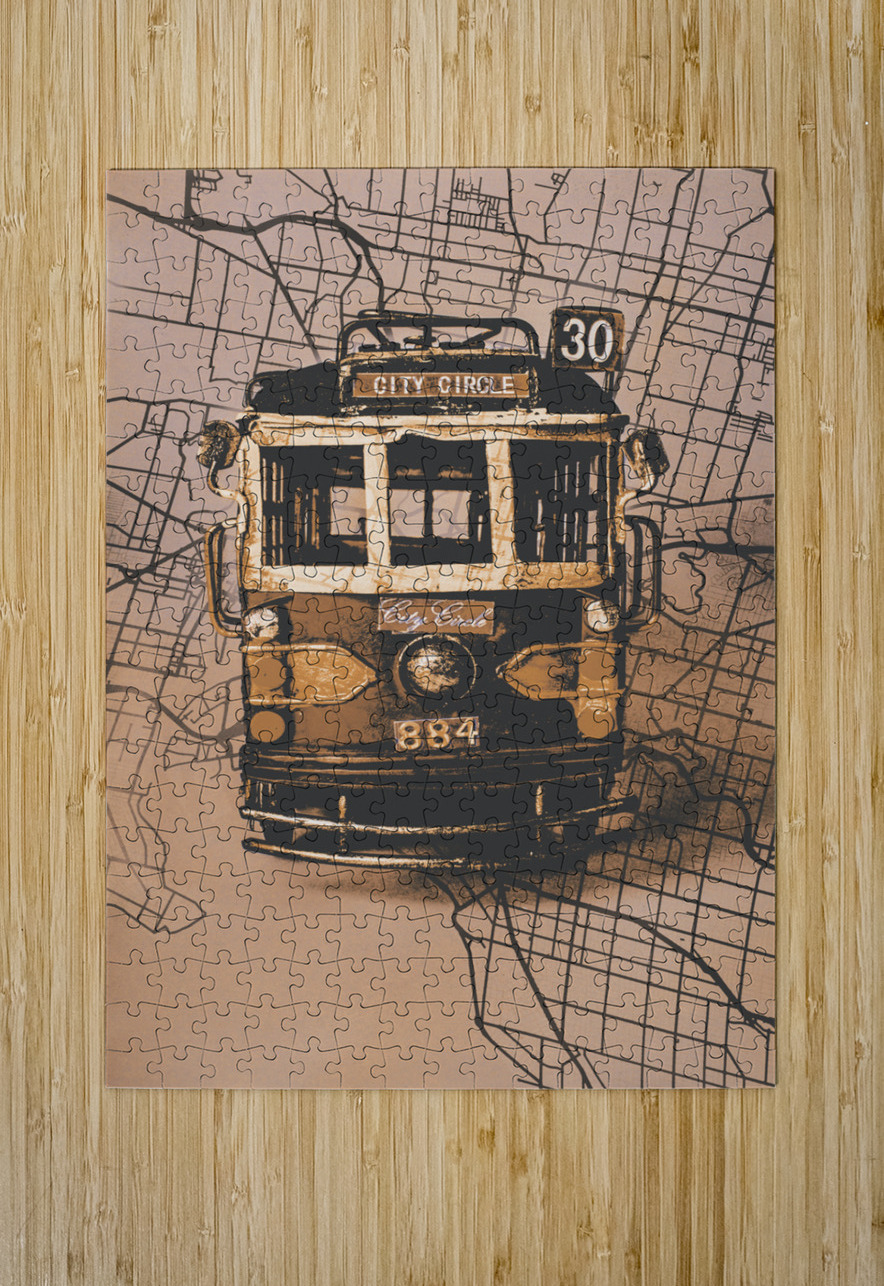 Old transport defined in a toned scene of nostalgic Melbourne trams and lined out stations