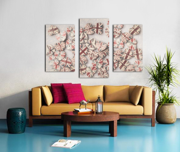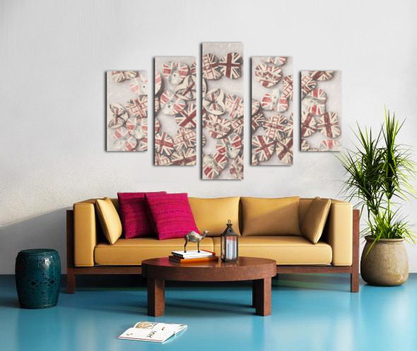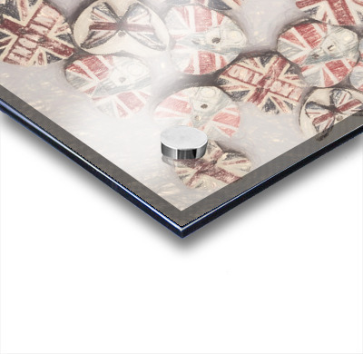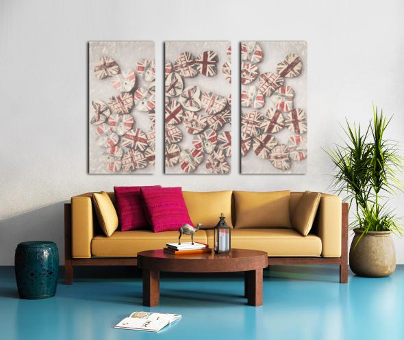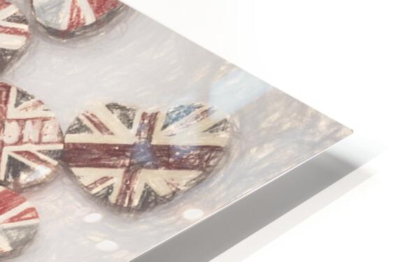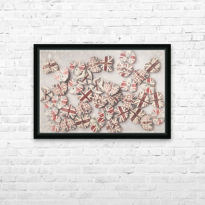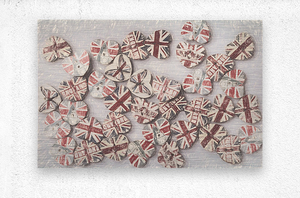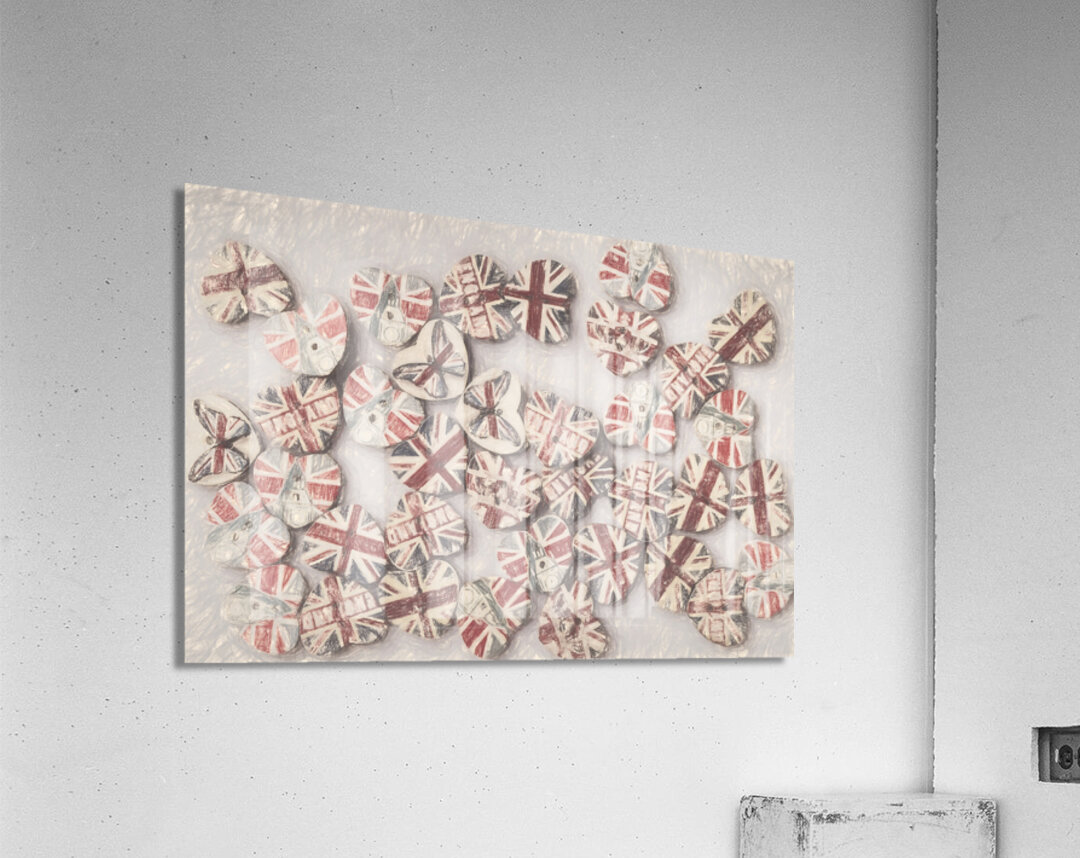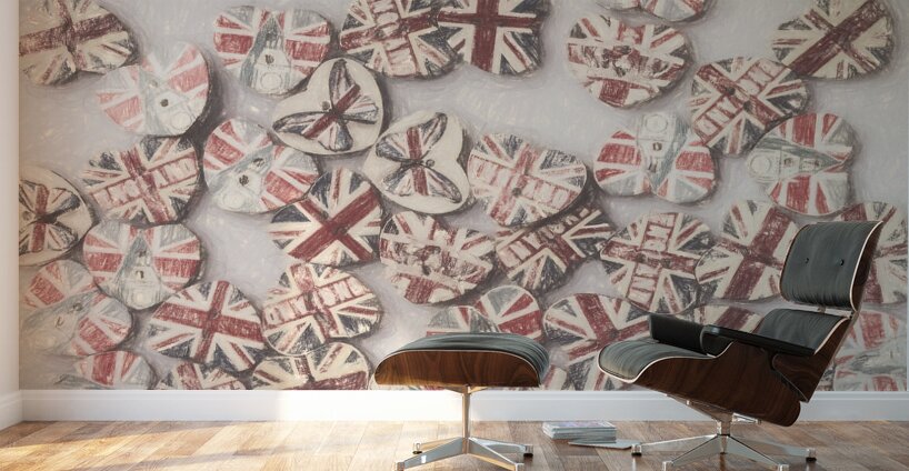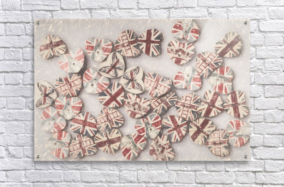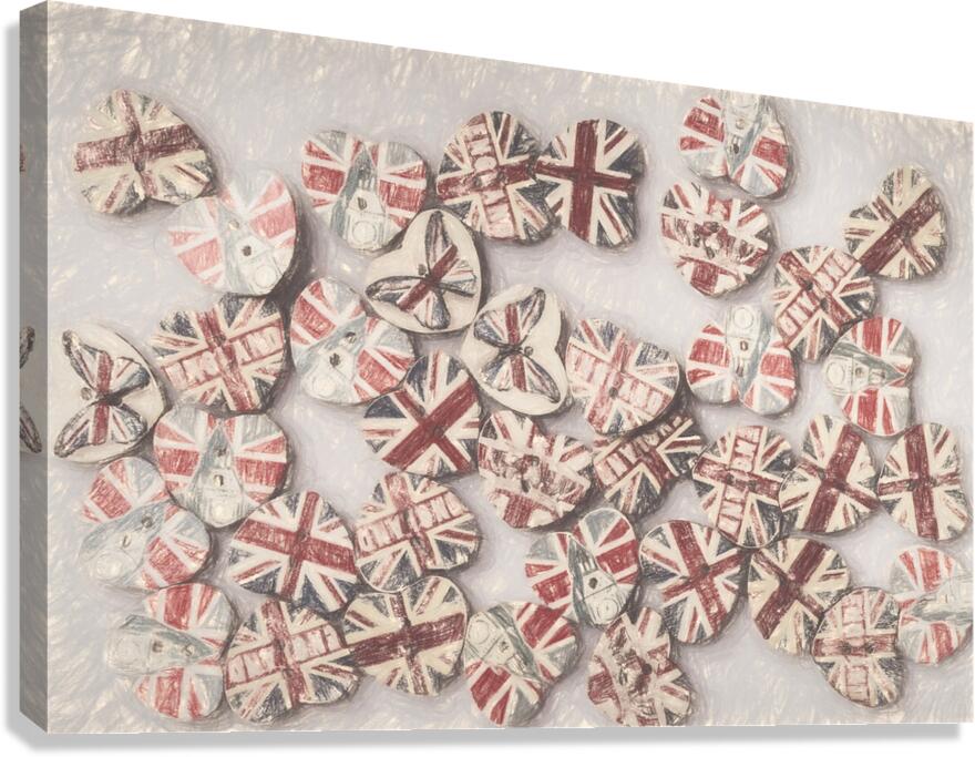 Fine art design on a scattering of sentimental union jack hearts joined in a united kingdom. Photo with illustration filter. Not AI