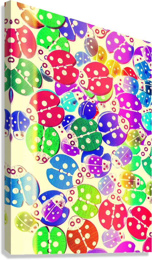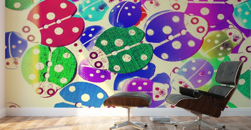 Retro revival in a still of cute spotted bugs with flares of hippie flower power. Ladybeetle luck