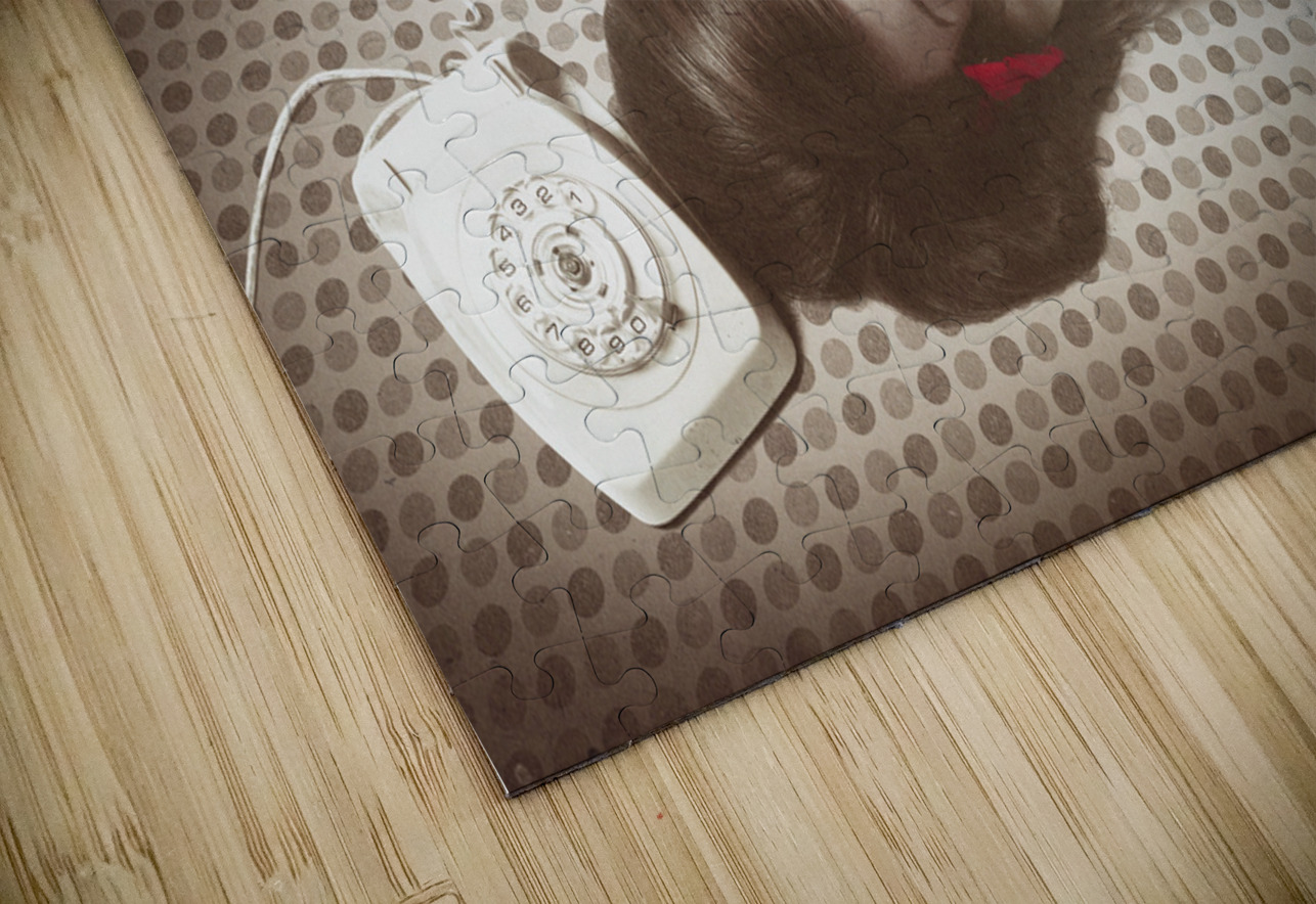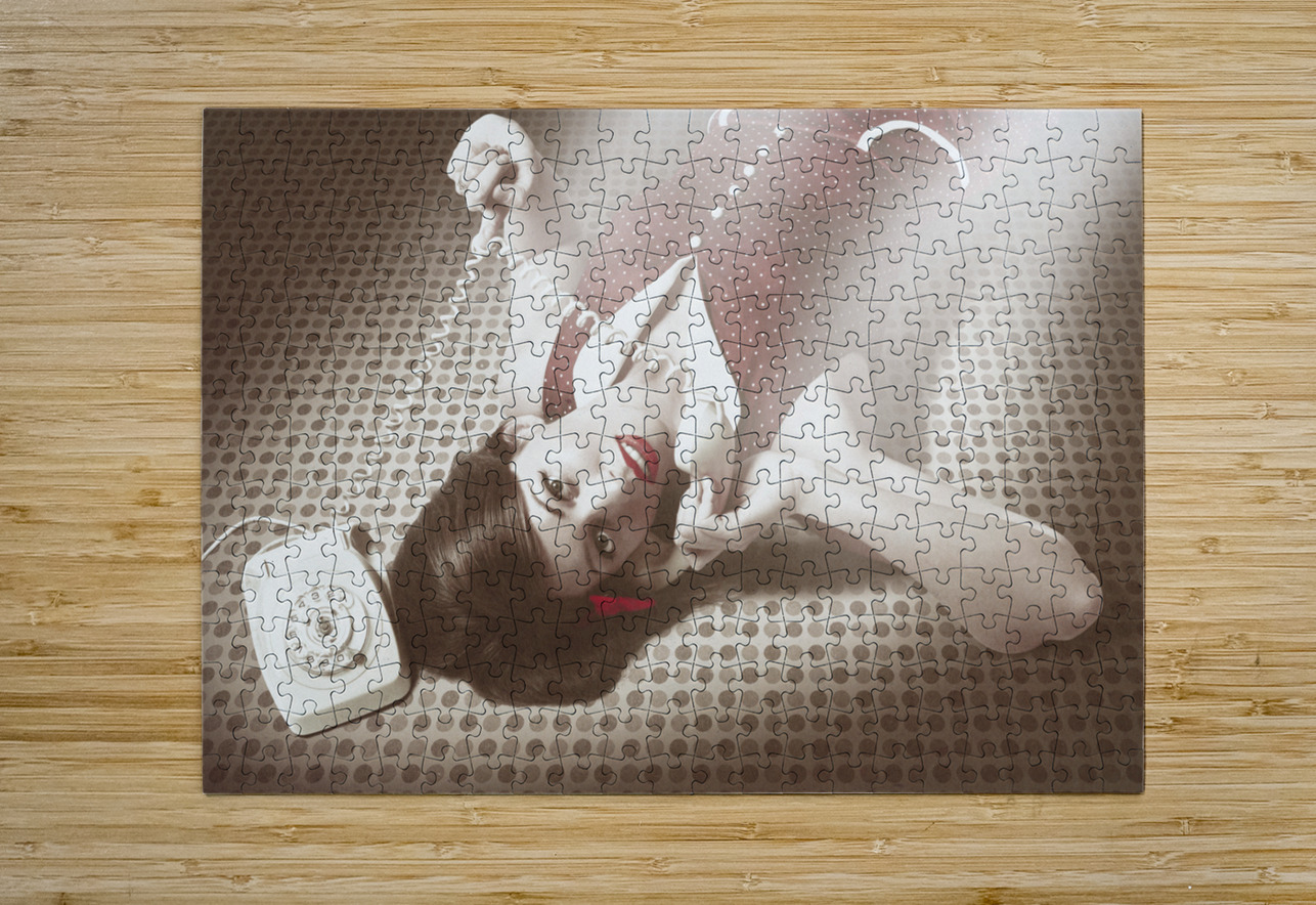 Beautiful brunette pinup woman on vintage phone Jorgo Puzzle printing