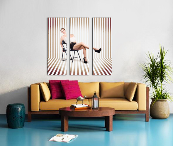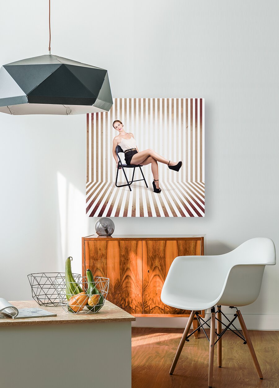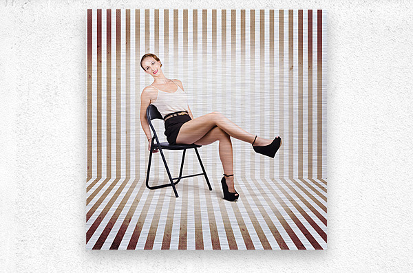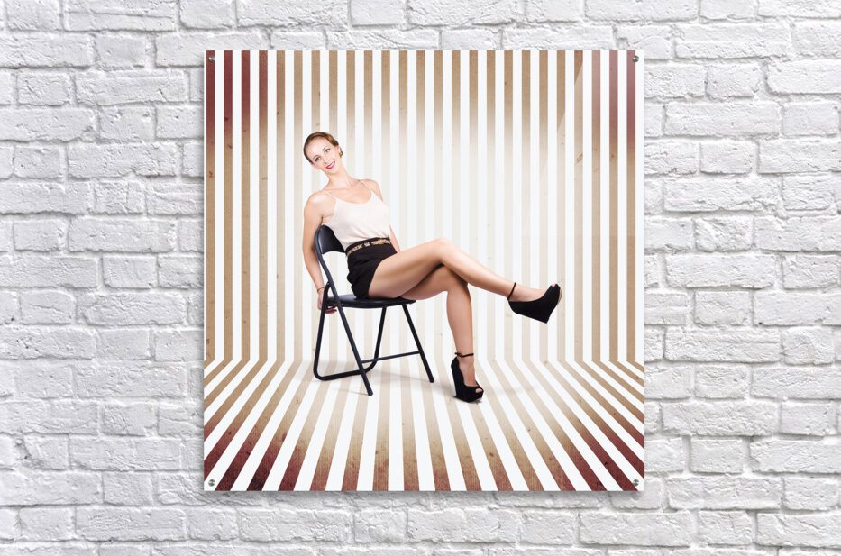 ABOUT THIS ARTWORK: STYLISH BRUNETTE PINUP WOMAN IN VINTAGE INTERIOR