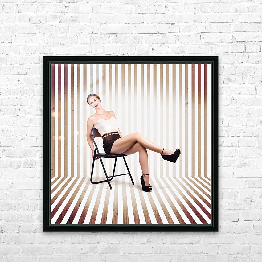 Stylish Brunette Pinup Woman In Vintage Interior Picture Frame Printing