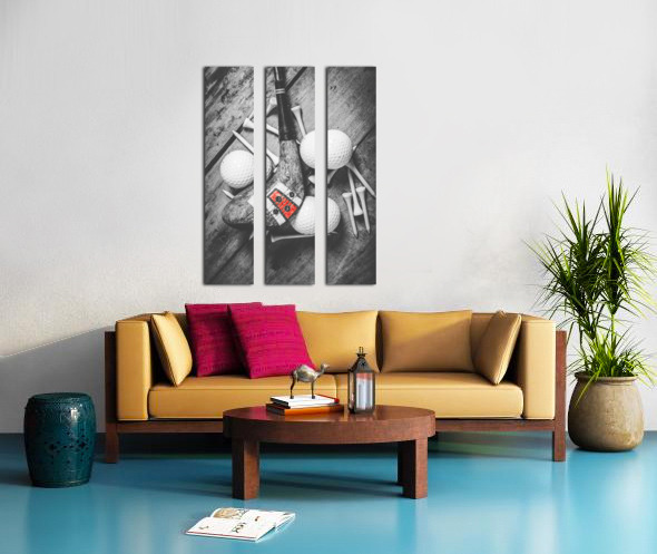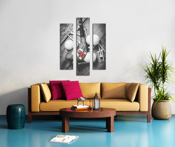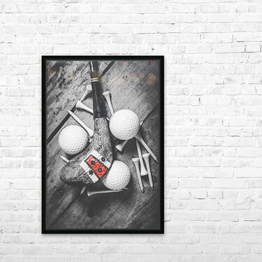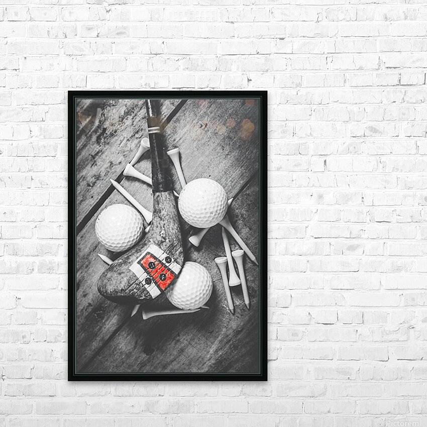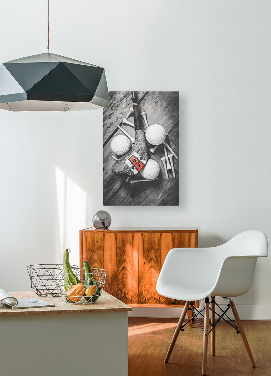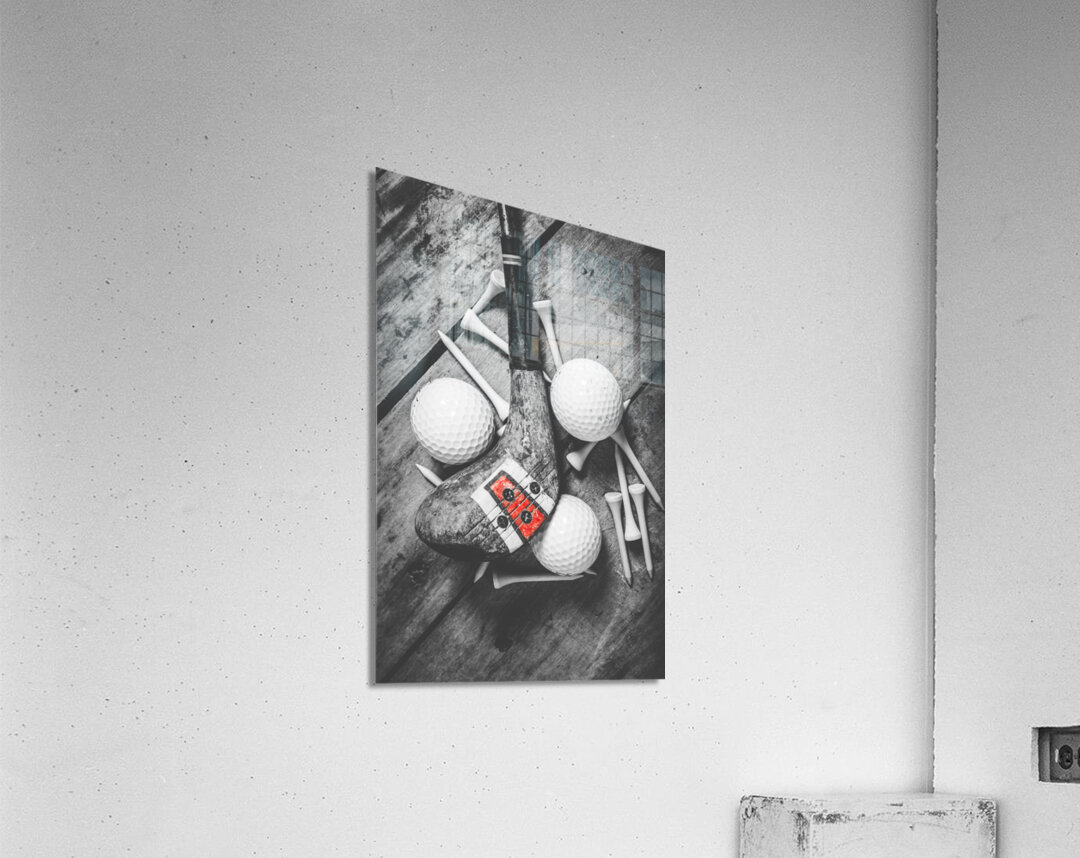 A vintage play in golfing history with selective colored wooden driver scattered with tees and golf balls