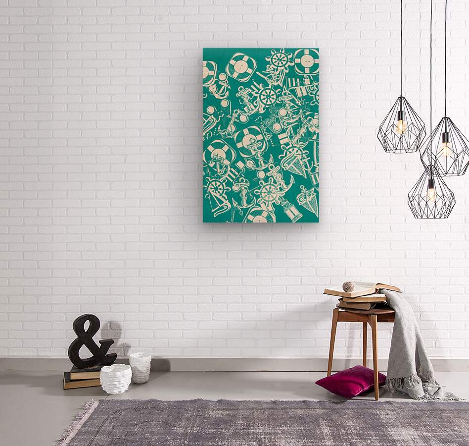 Abstract maritime design on a boating buttons in ocean green. Sailing scenes