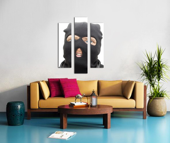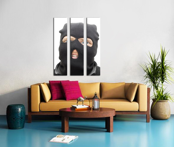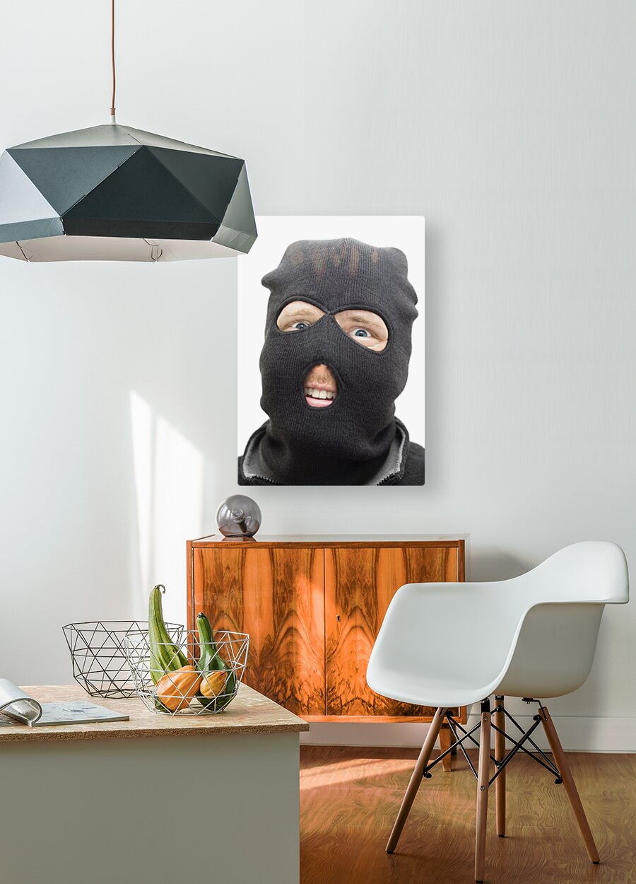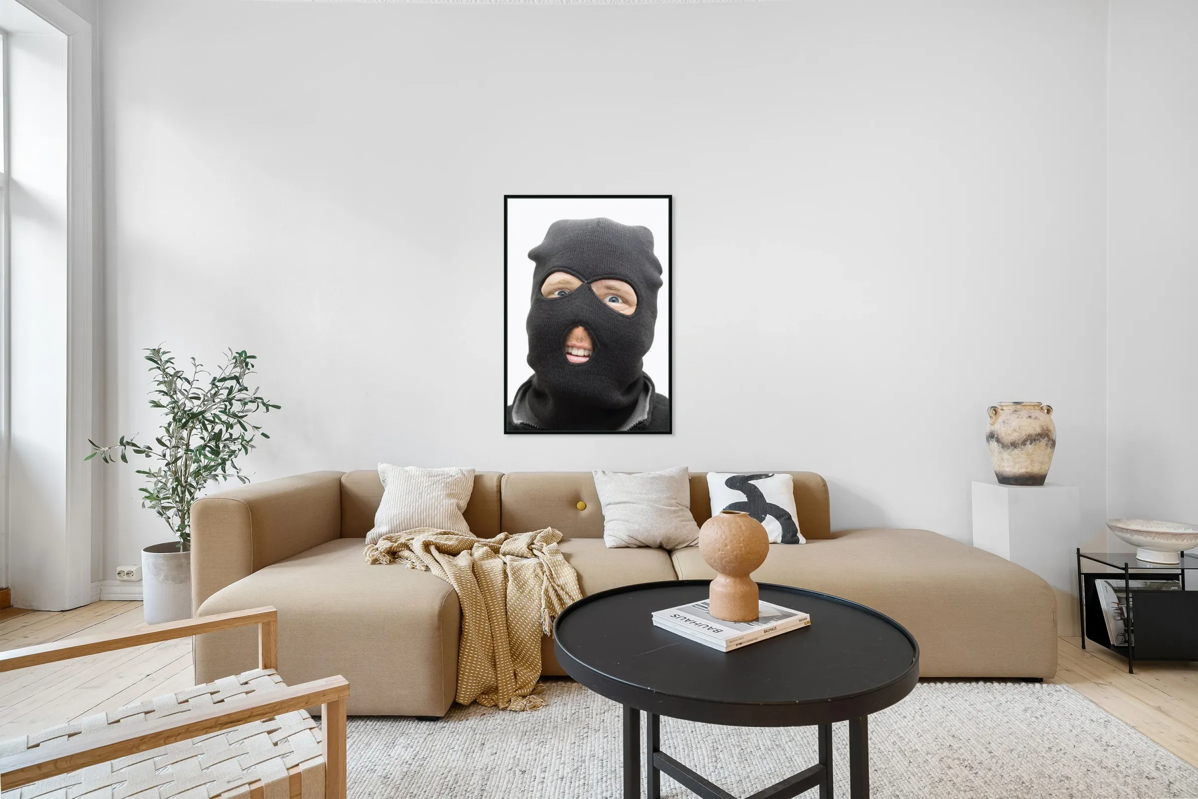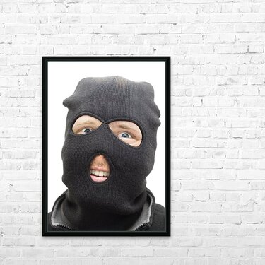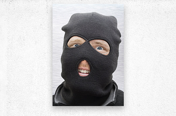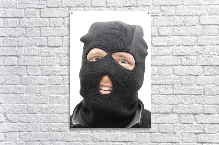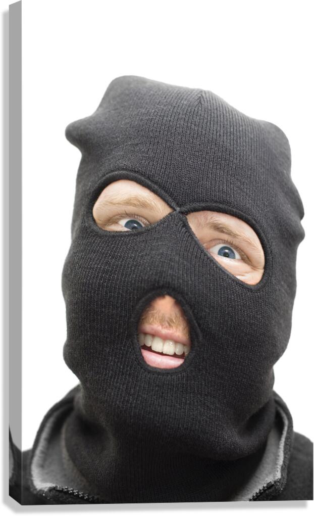 Face Of A Cheeky Criminal With A Funny Smile Through A Black Ski Mask