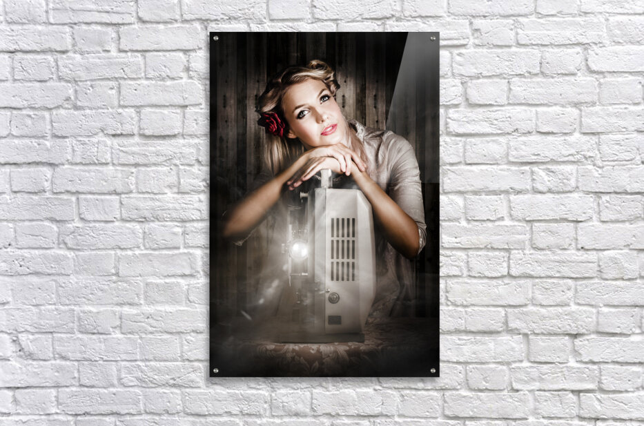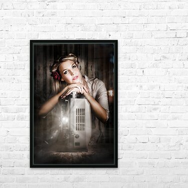 Vintage Beauty Watching Old Film Projector Movie Picture Frame Printing