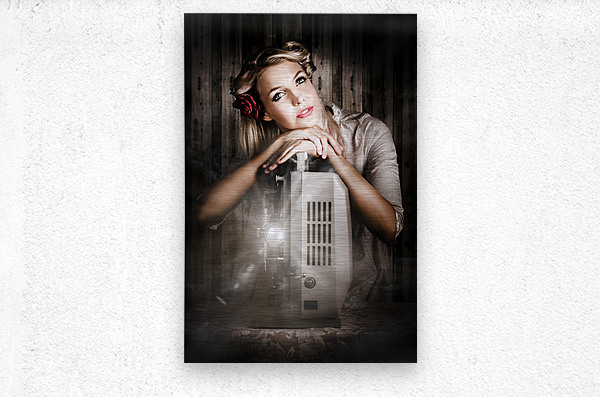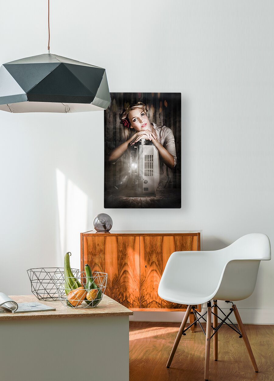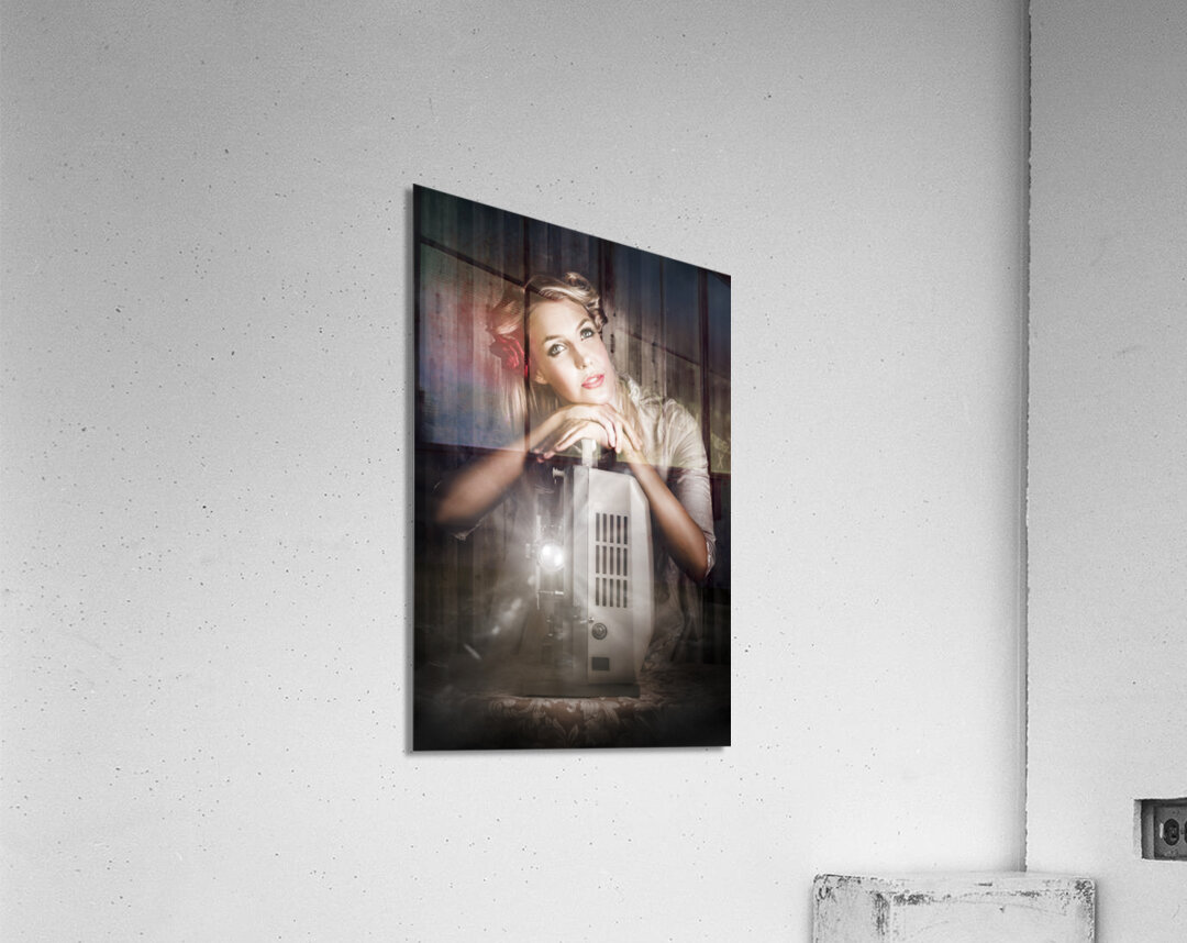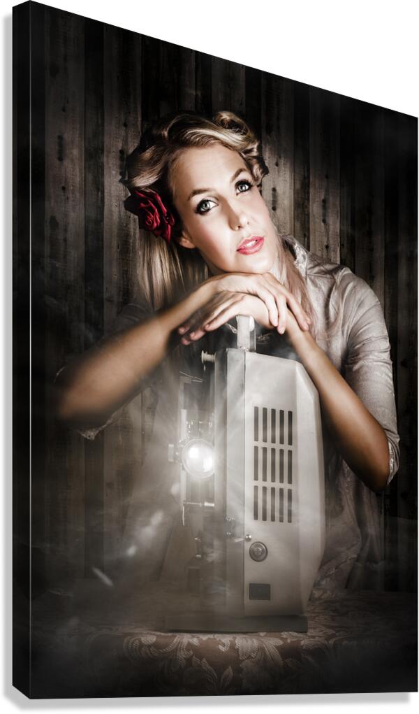 Get this artwork "Vintage Beauty Watching Old Film Projector Movie" in a framed print.