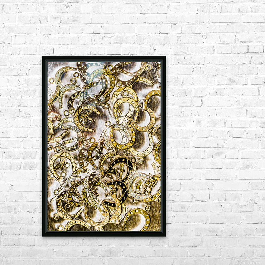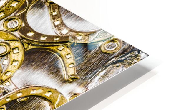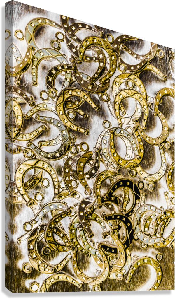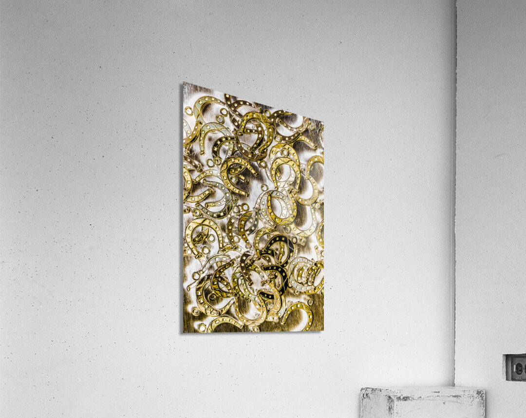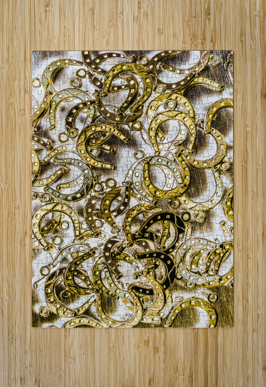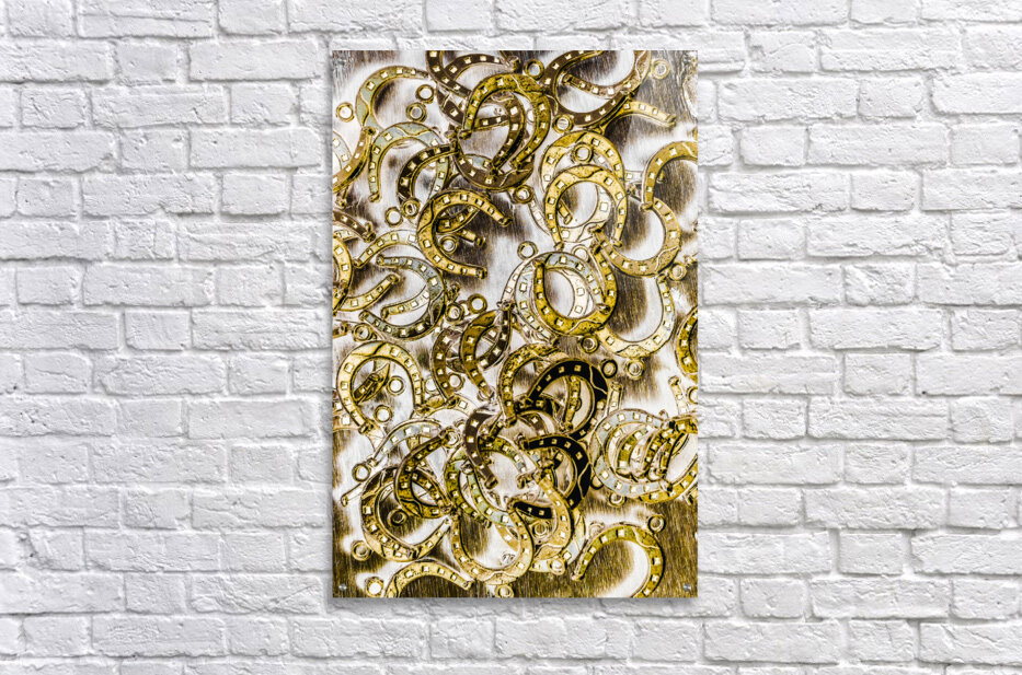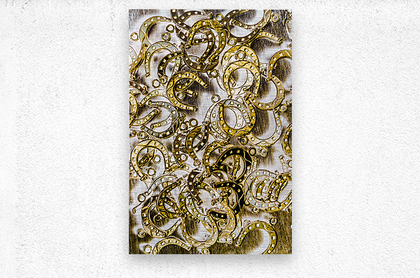 Intricate background patterning on rustic rural horseshoes in creative composition
