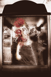 Funny horror portrait of a dead zombie man getting distracted while making a tangled emergency payphone call for help. Help! Itchy ugly face so I ate ...[+]