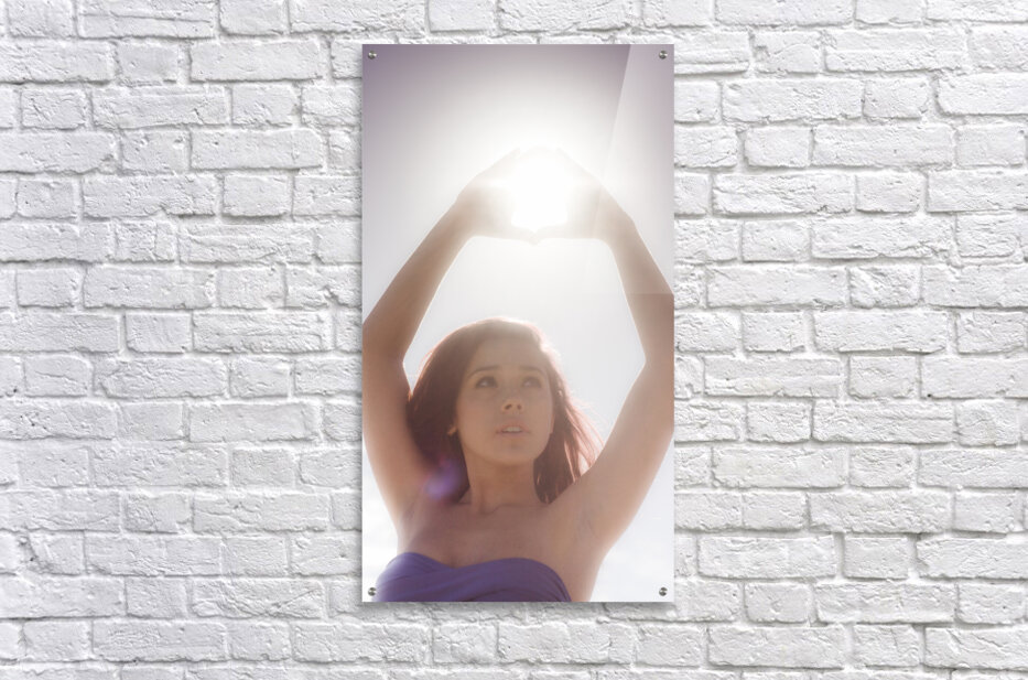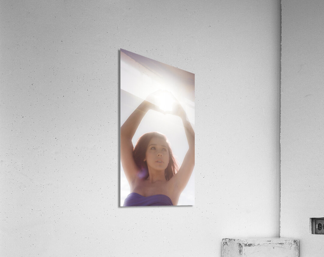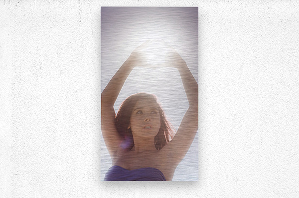 Vintage Portrait Of A Young Woman Holding Hands Up Above Head To Catch Rays Of Sun Light Beaming Down From Heavens Above In A Depiction Of Enlightenment