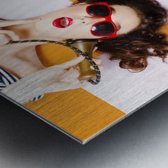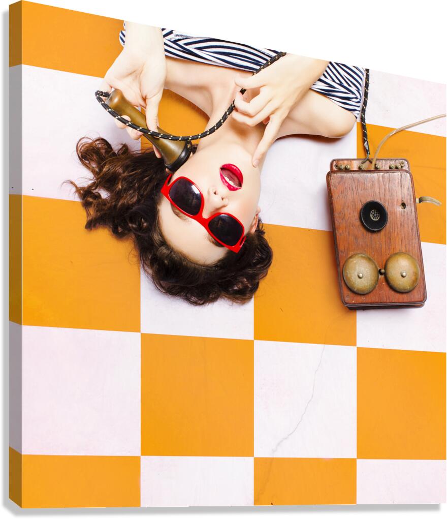 Pin-up beauty decision making on old phone Picture Frame Printing