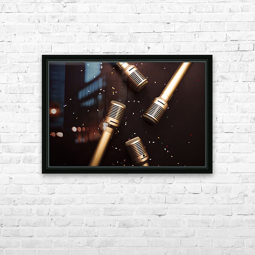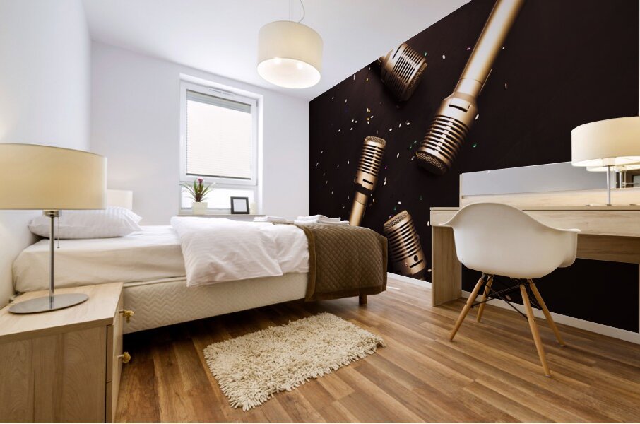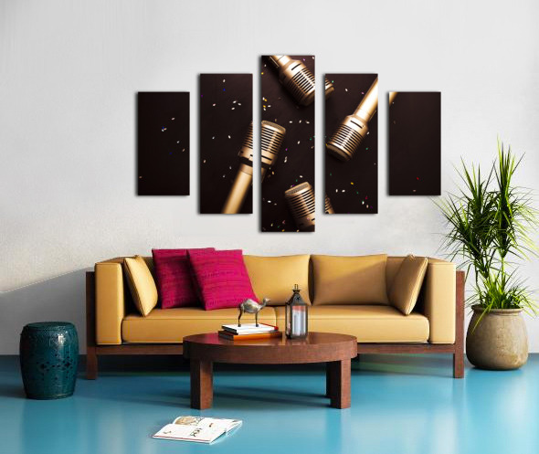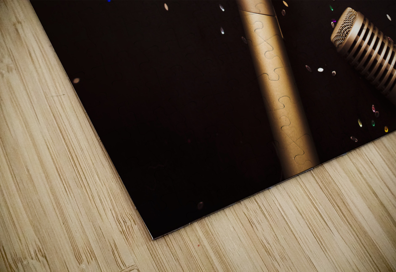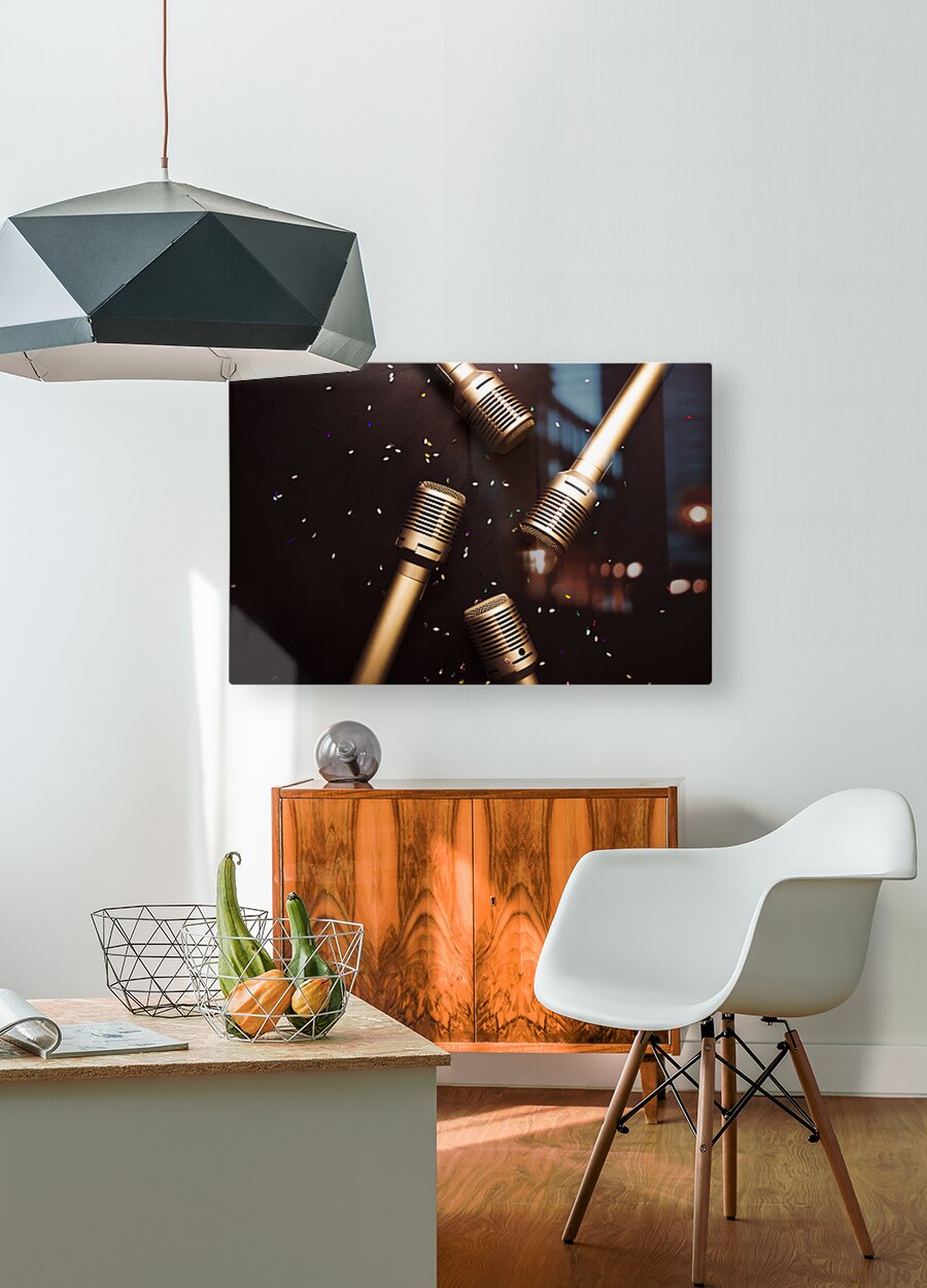 Creative still-life art on a 4 way confetti covered microphone party. A showtime scene
