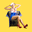 Isolated cute blond pinup girl in a military blue navy uniform on white background