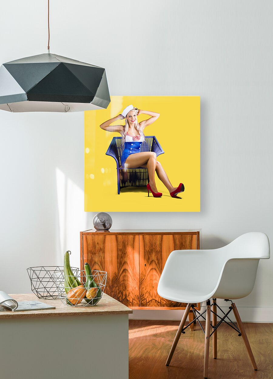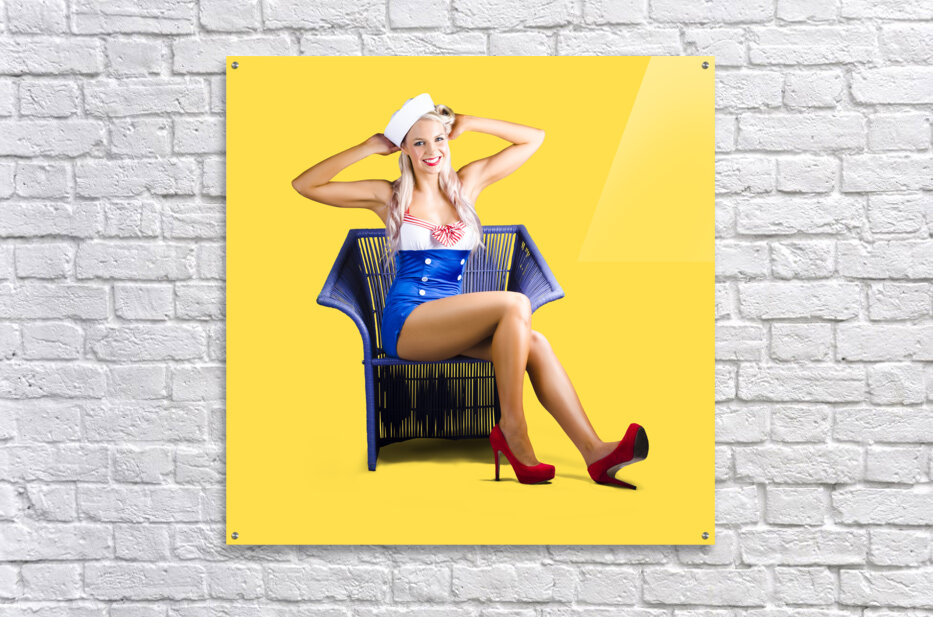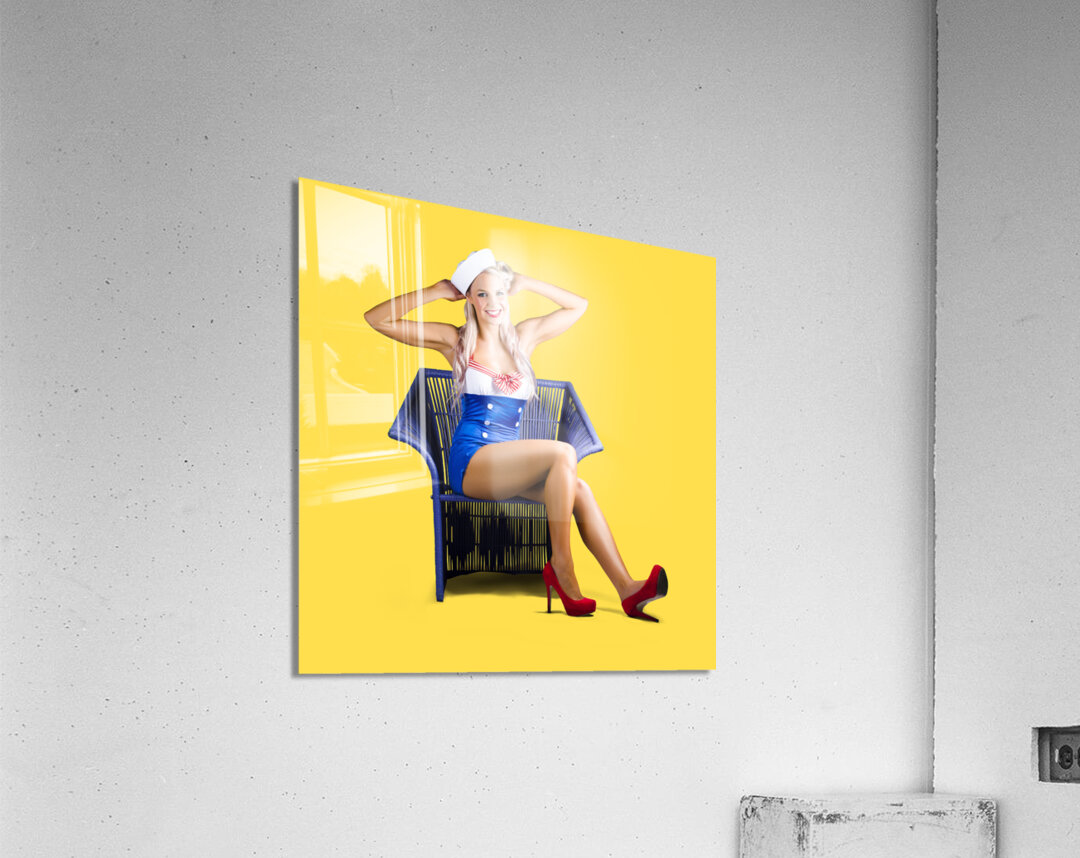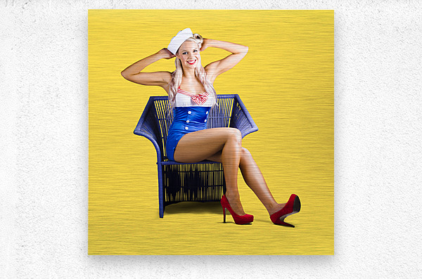 Get this artwork "Isolated navy pinup girl on white background" in a framed print.