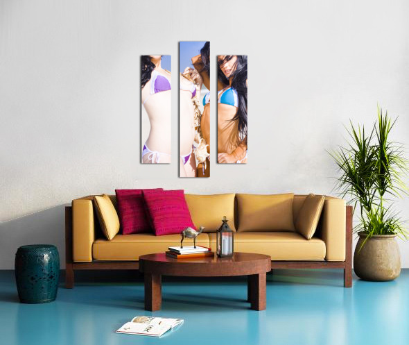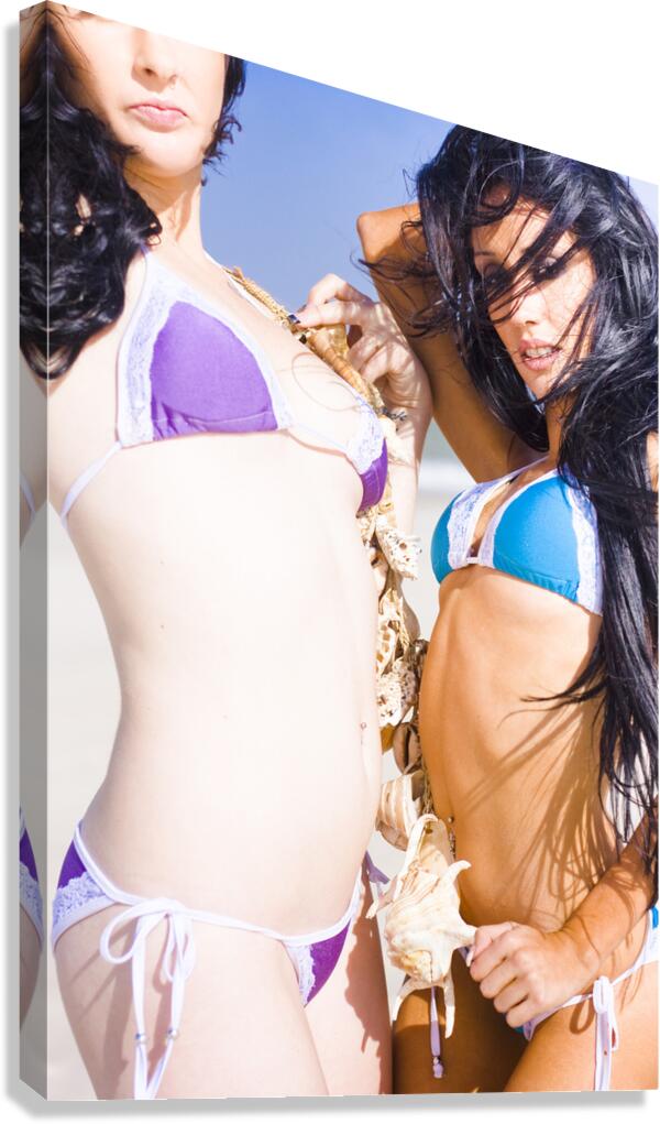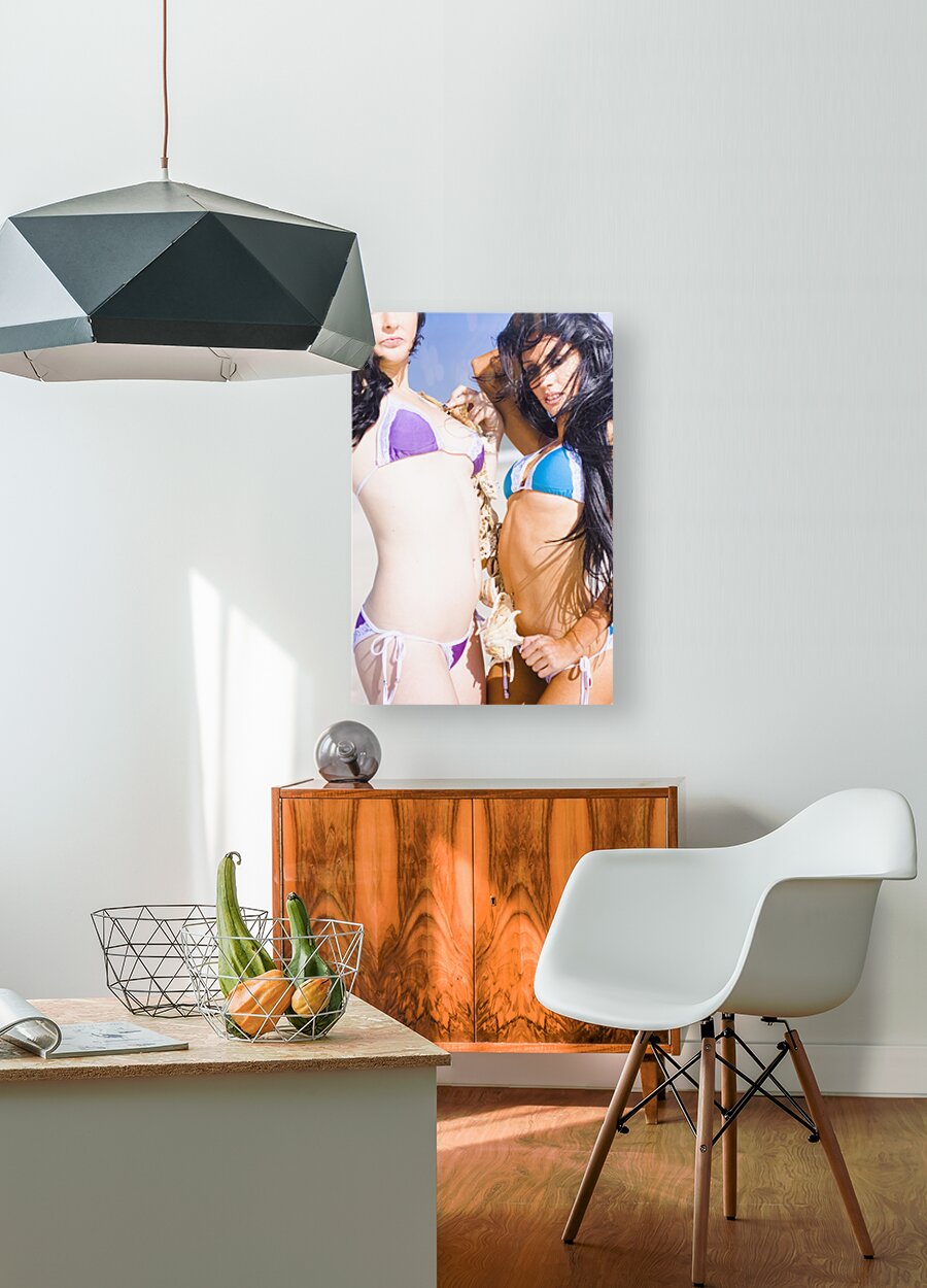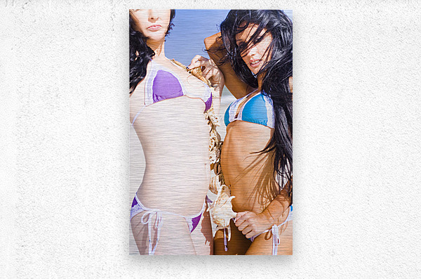 Female Babes Dancing In Their Swimming Costumes Holding Sea Shell Crustaceans During A Birthday Party Celebration Or New Year Festivity In A Beach Par...[+]