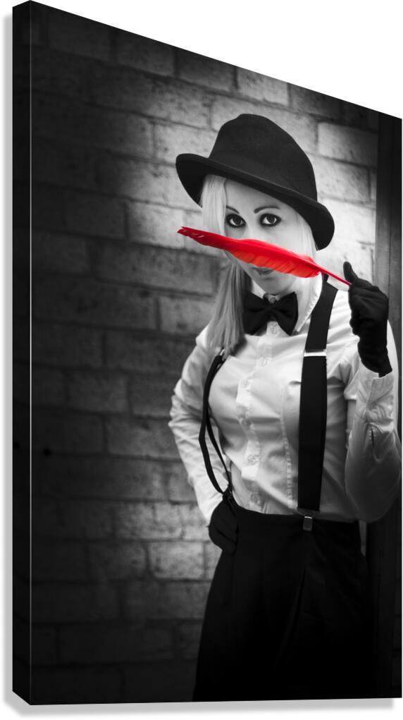 In a Black And White Attempt To Catch A Suspect Red Handed A Old Fashioned Detective Discovers A Soft Clue In The Form Of A Red Feather