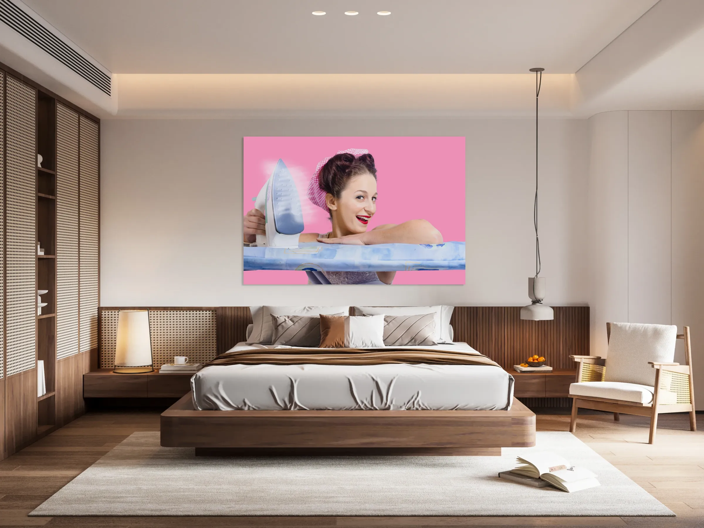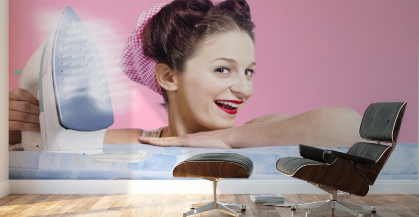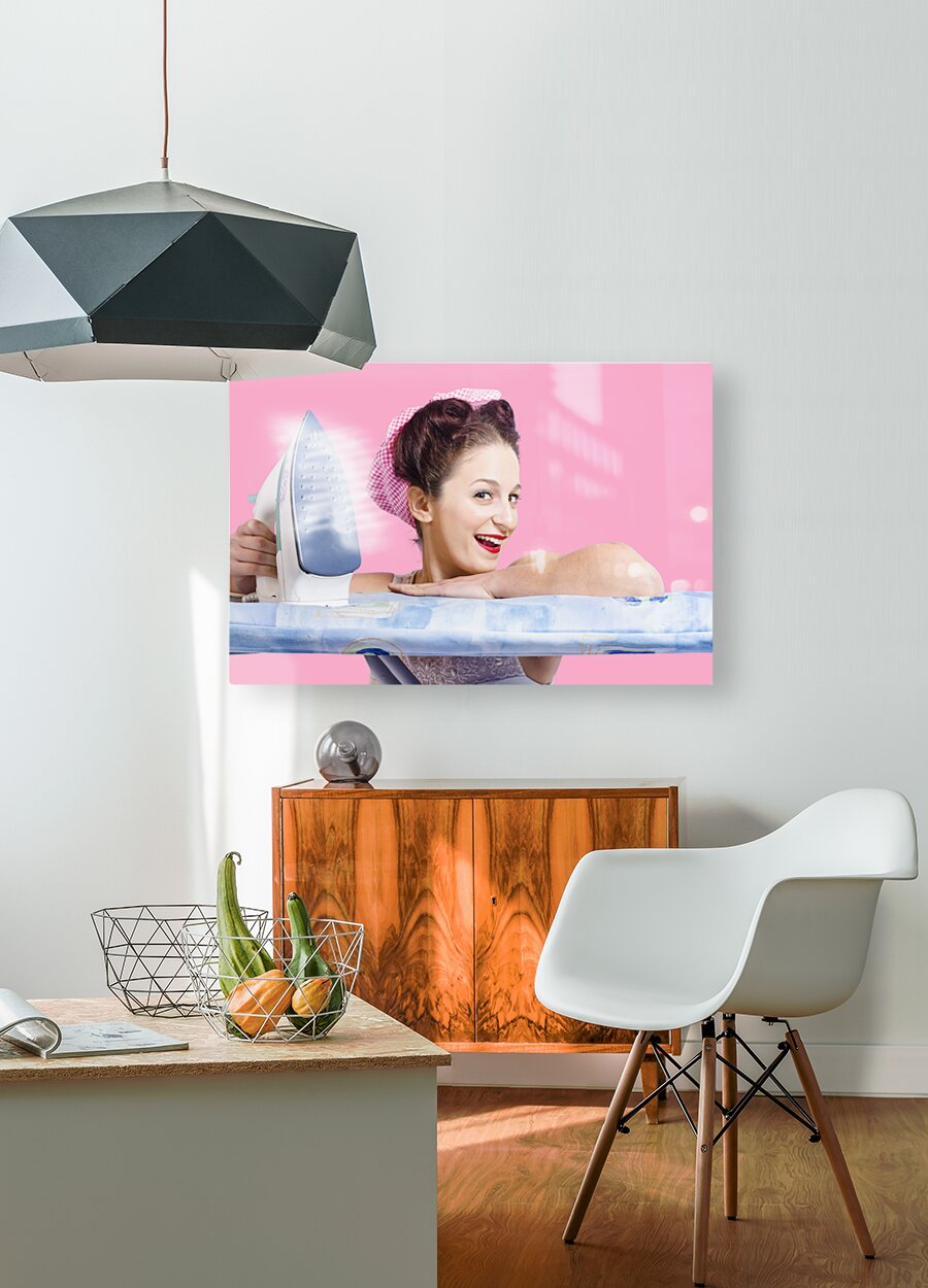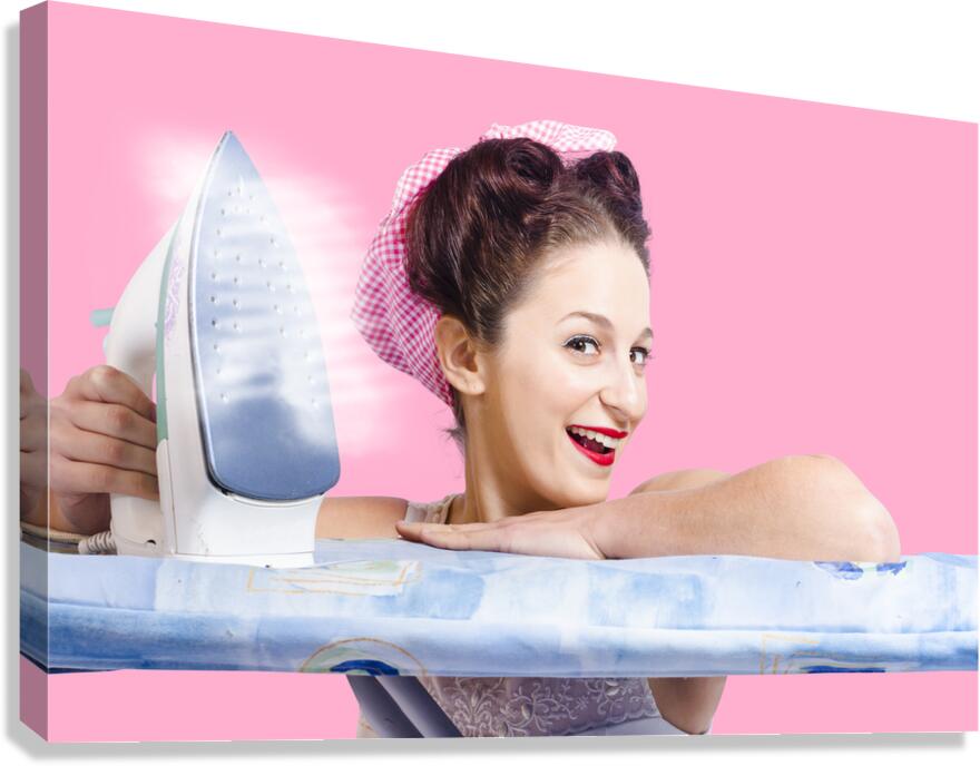 ABOUT THIS ARTWORK: SMILING HOUSEWIFE DOING HOUSEWORK LAUNDRY DUTIES