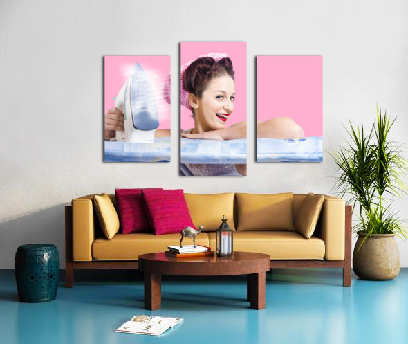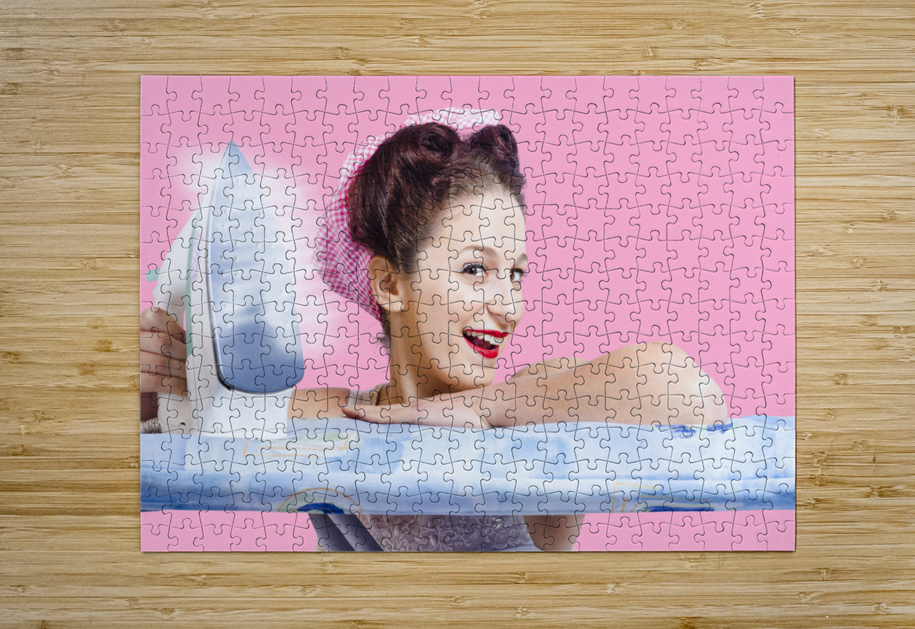 Smiling housewife doing housework laundry duties Jorgo Puzzle printing