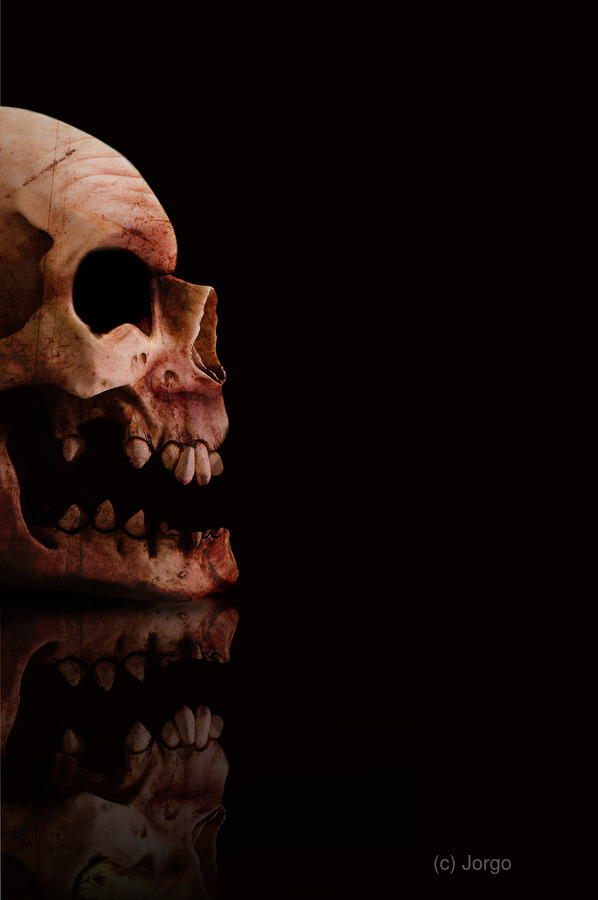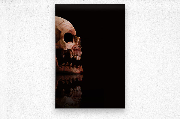 Dark Scary Skull Smiling In Darkness Isolated On A Black Background