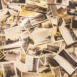 Heap of black and white scattered photos in close-up