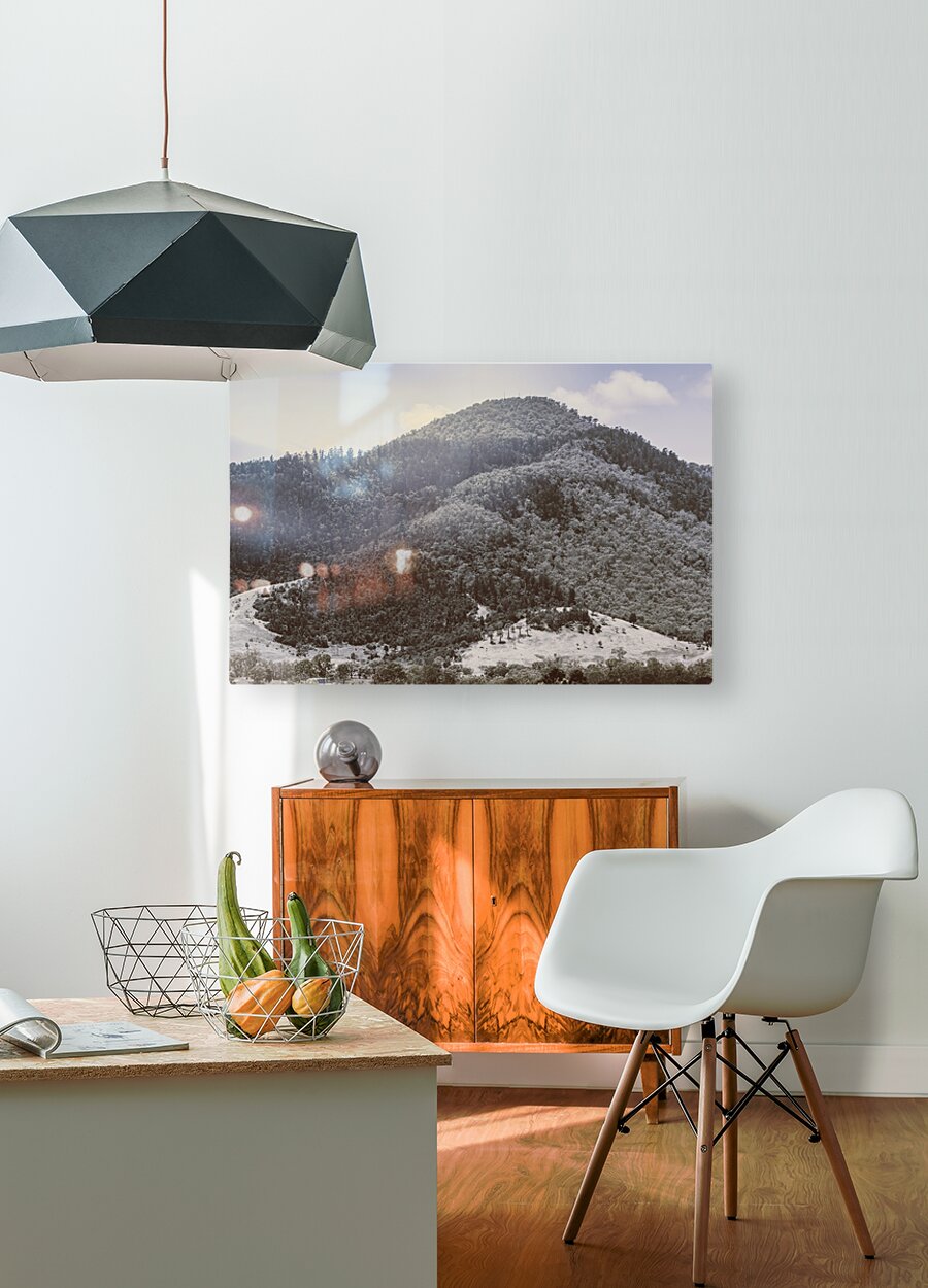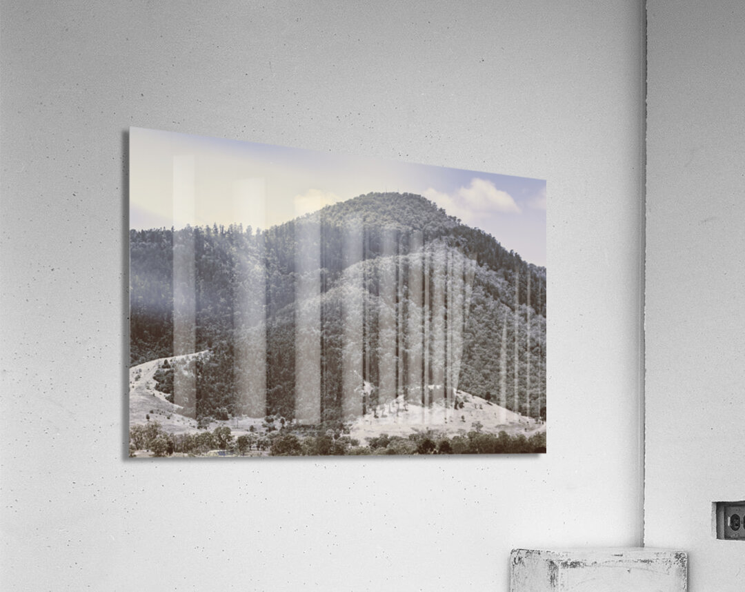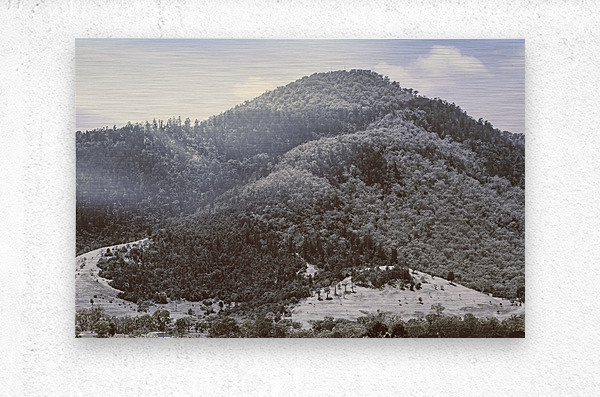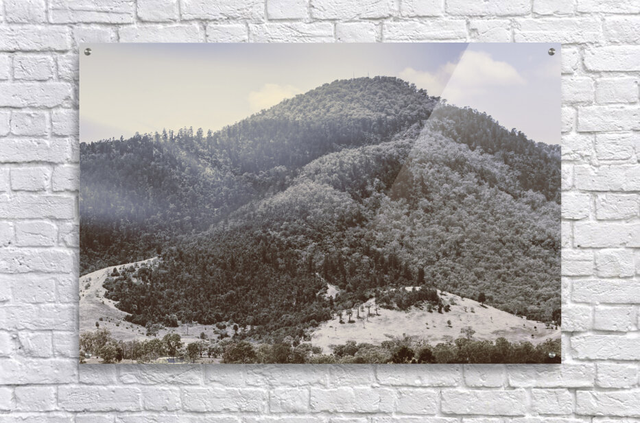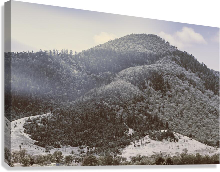 Sun lit serenity with tree covered mountain in natural desaturation. Mount Perry Queensland Australia