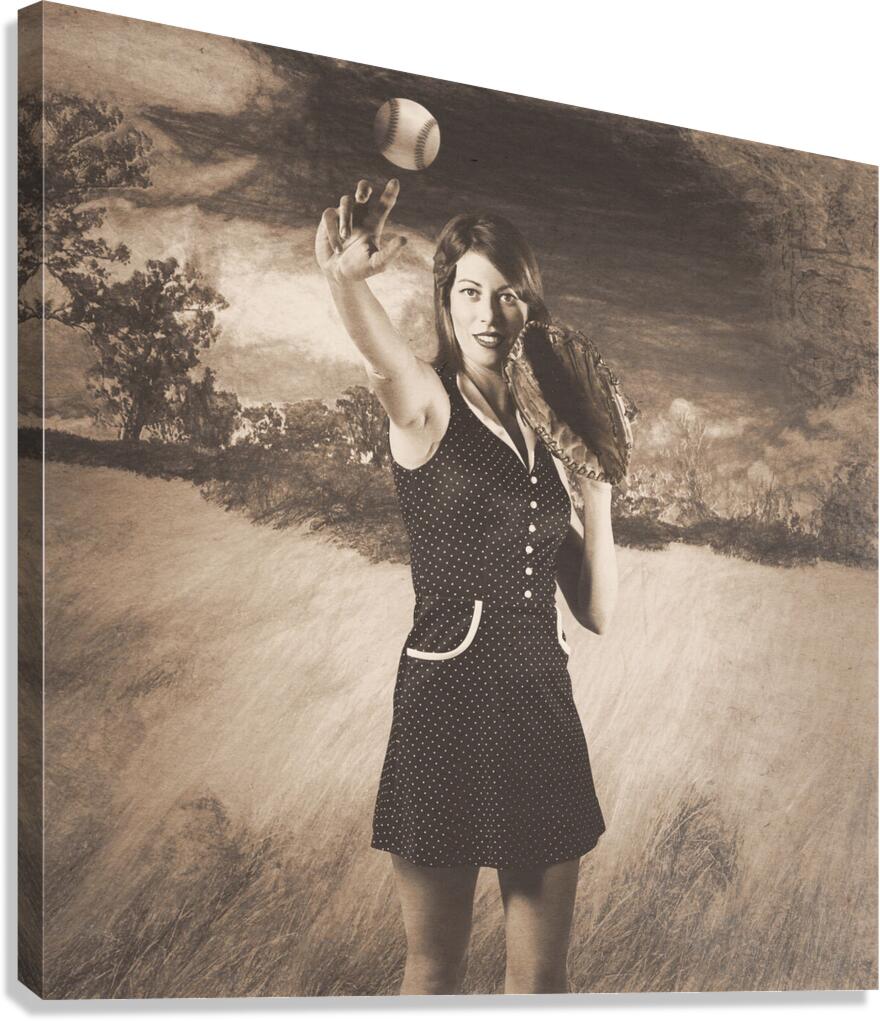 Get this artwork "Vintage pin up girl pitching baseball" in a framed print.