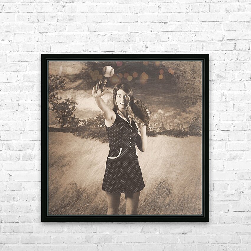 Vintage pin up girl pitching baseball Picture Frame Printing