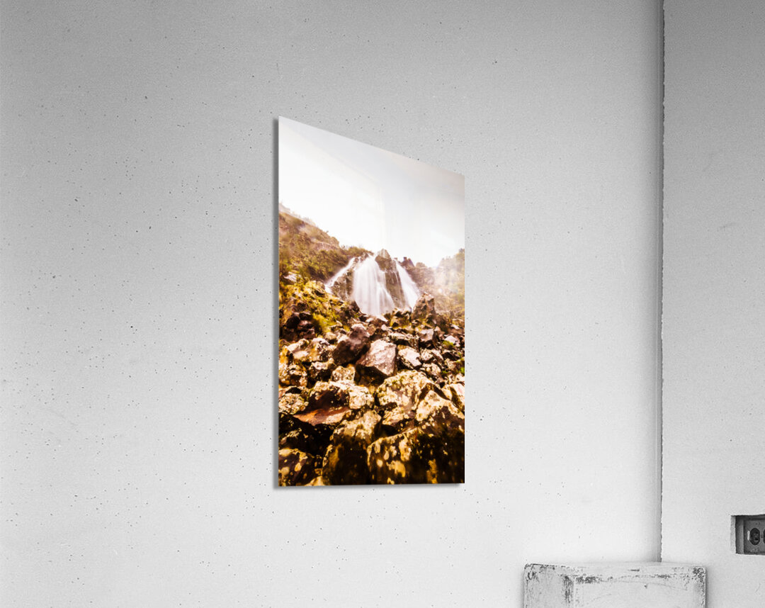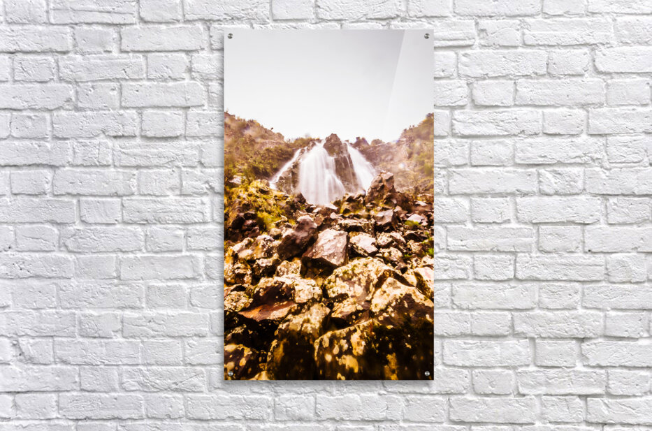 Tranquil nature photograph on a rocky landscape of western waterfalls. Waratah Falls Tasmania Australia