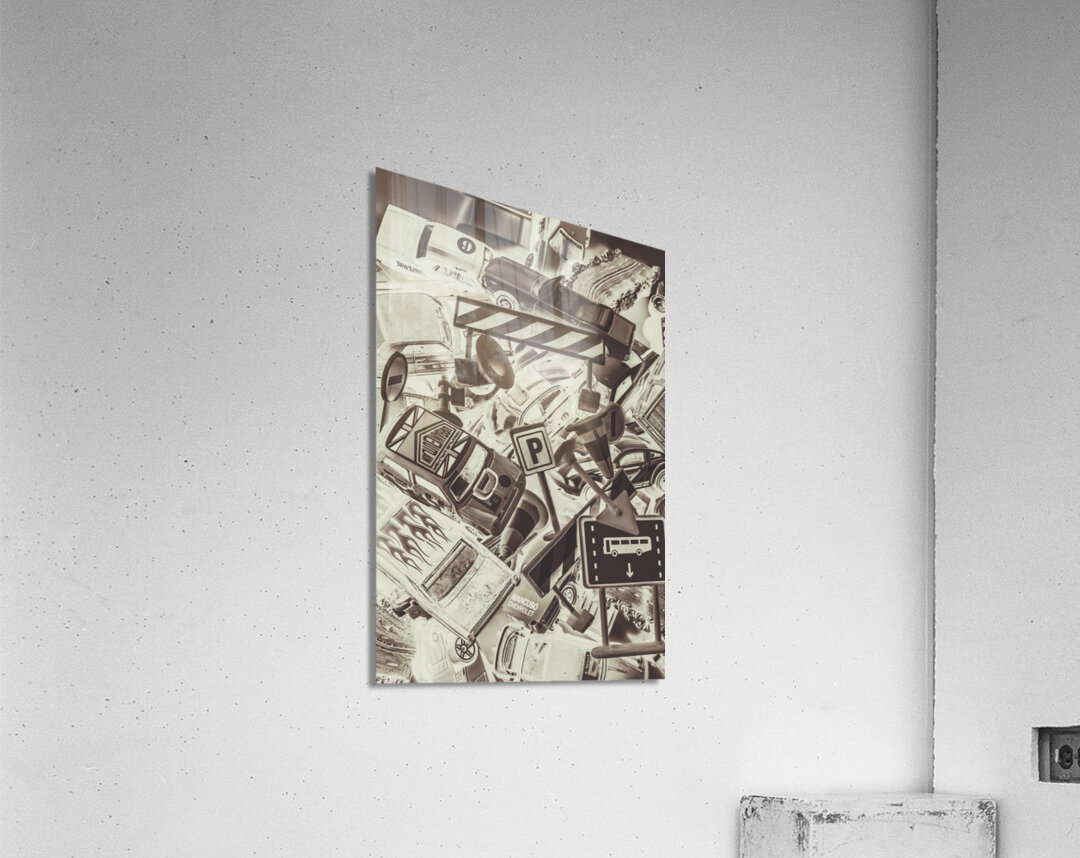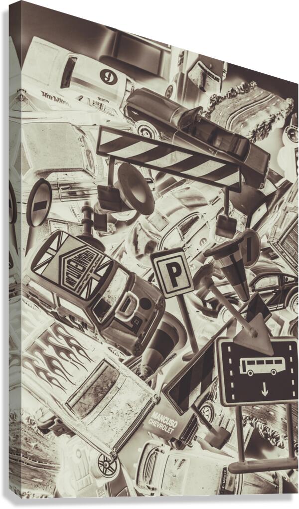 Creative auto art on a artificial scene in city streets with toy cars and downtown bottlenecks