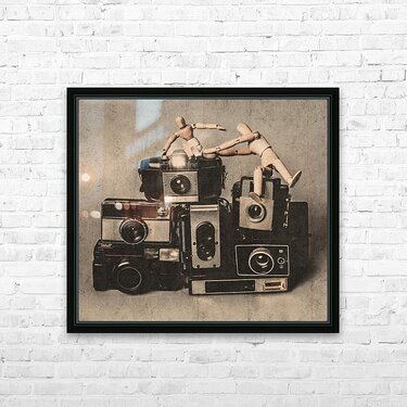 A dreamy scene of compositional play with toys and cameras in balance and composure staging scenes and settings in manual mode