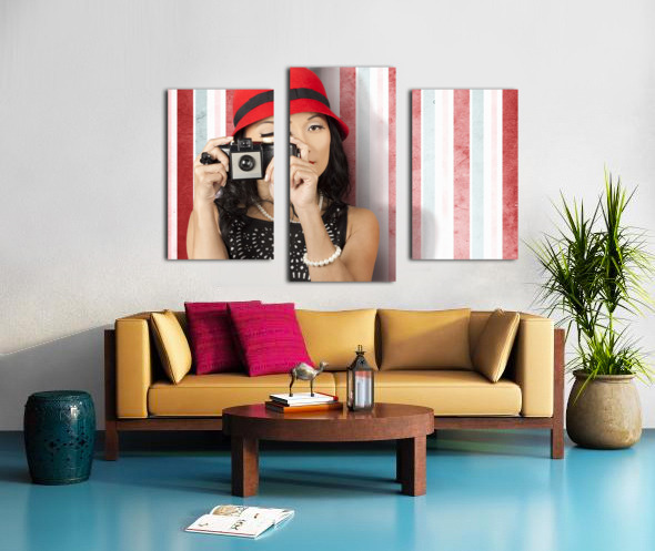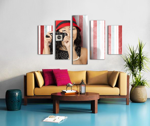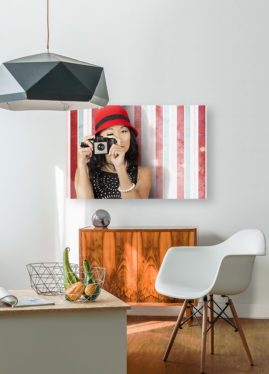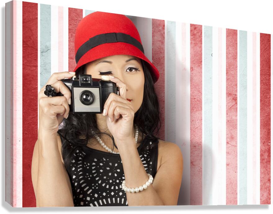 Get this artwork "Pin-up photographer in 40s fashion holding camera" in a framed print.