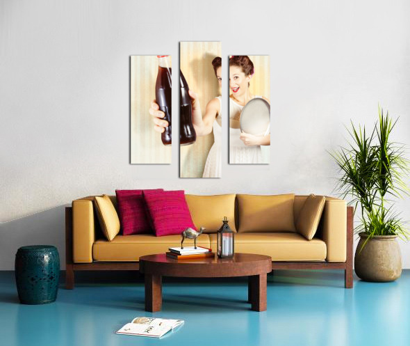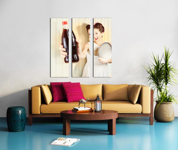 Get this artwork "Female pin-up waiter serving drink at summer party" in a framed print.