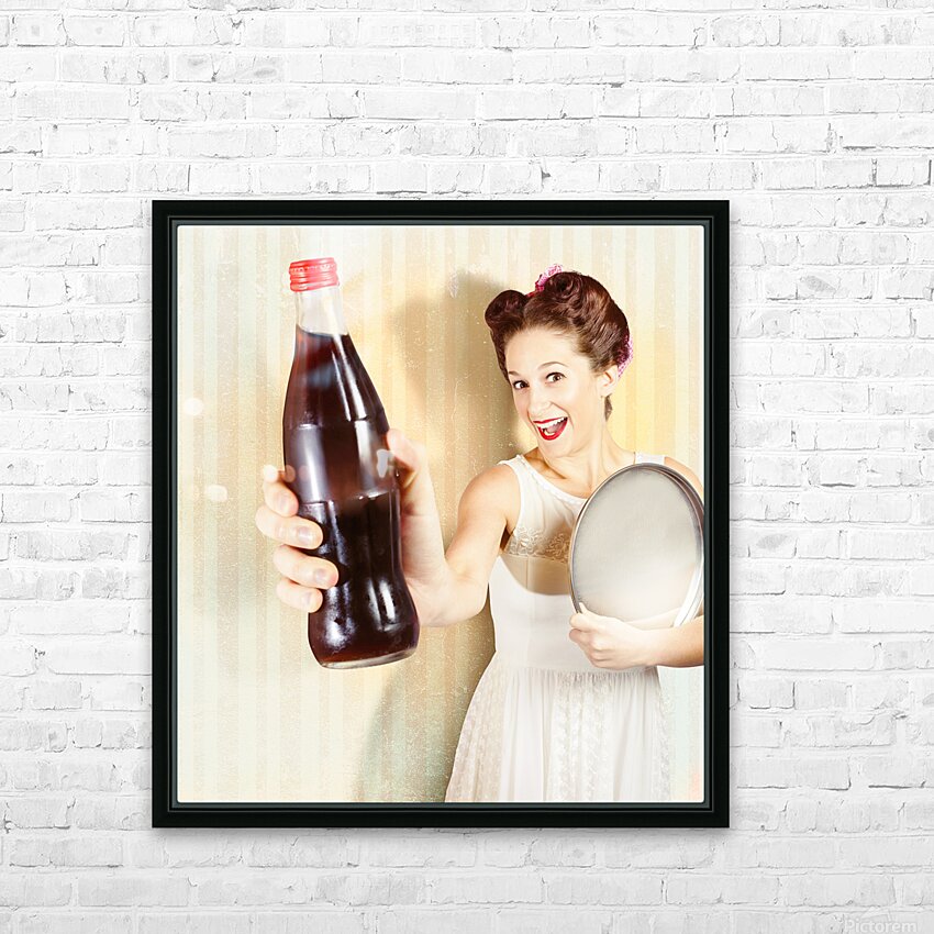 Female pin-up waiter serving drink at summer party Picture Frame Printing
