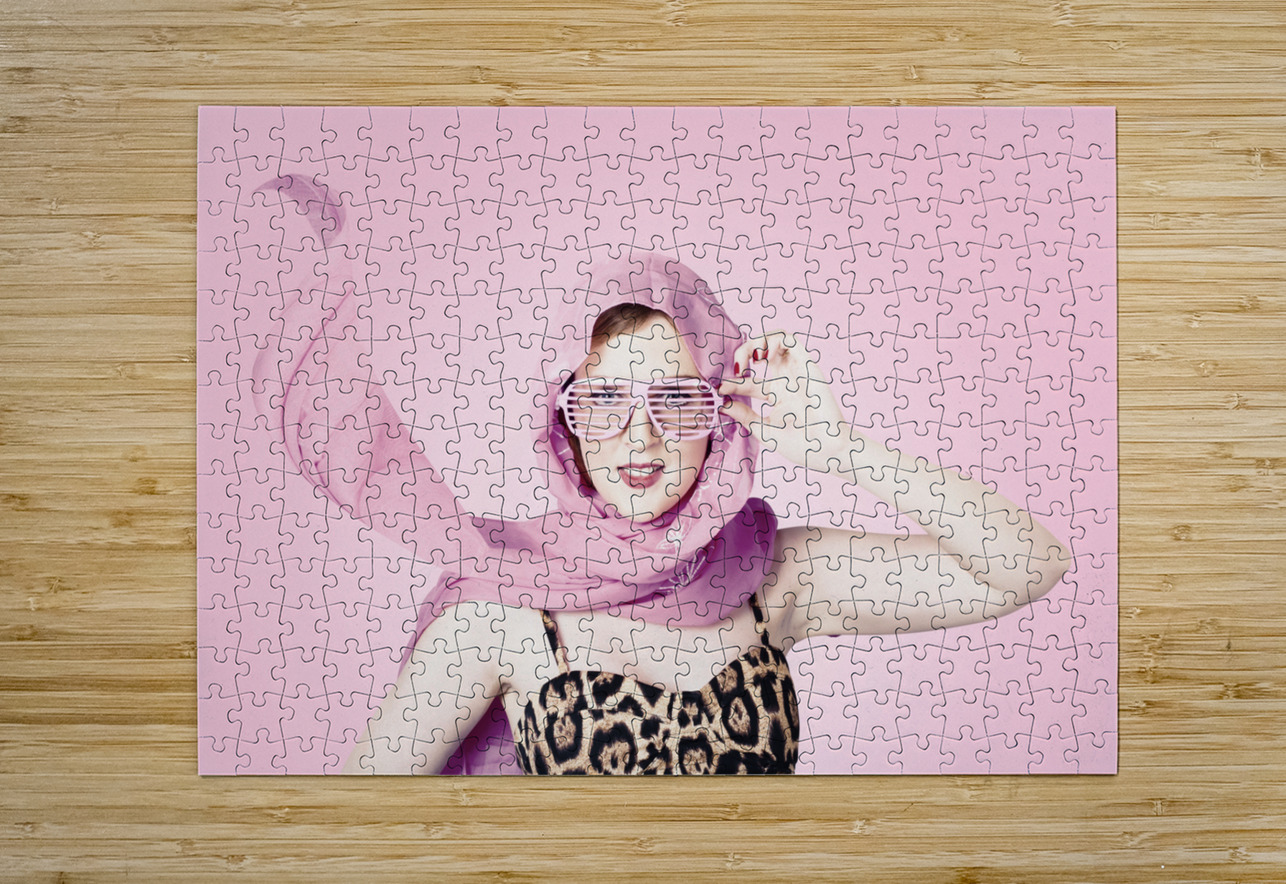 Beautiful retro girl in pink 1950 pinup fashion Jorgo Puzzle printing