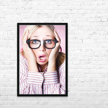 Hysterical business woman having panic attack Frame print