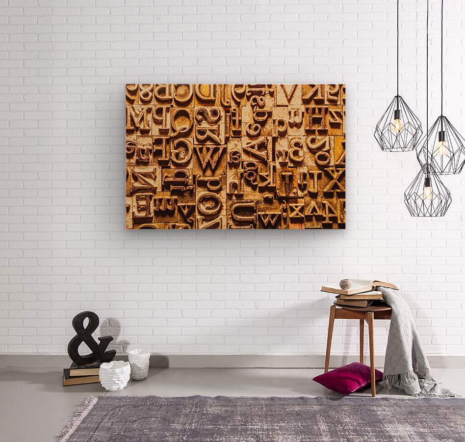 Historic background art on a alphabetized wall of rustic typesetting comms. Presstraction