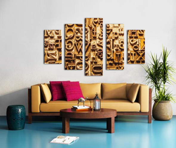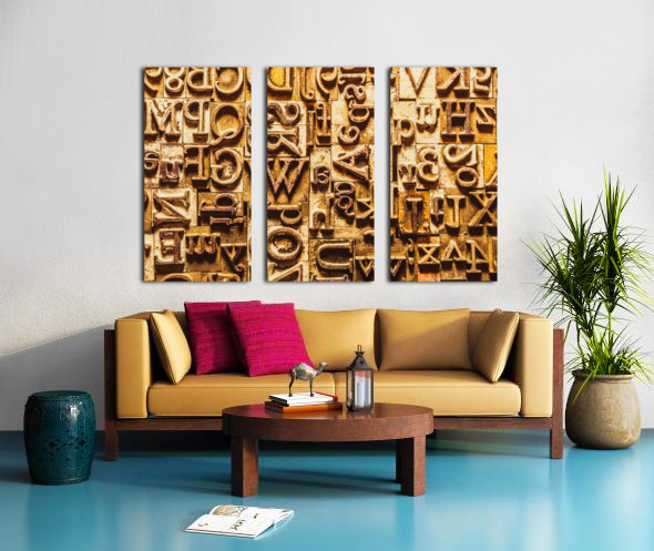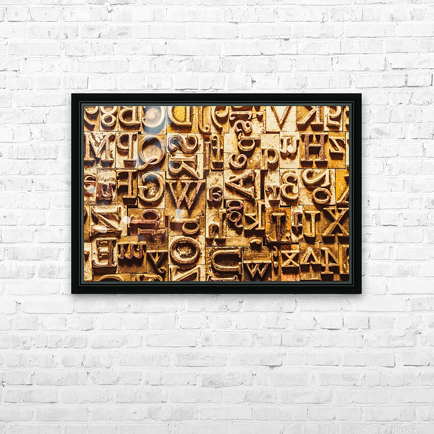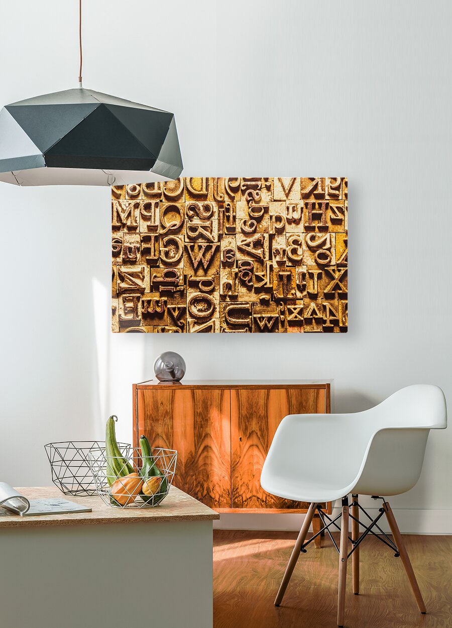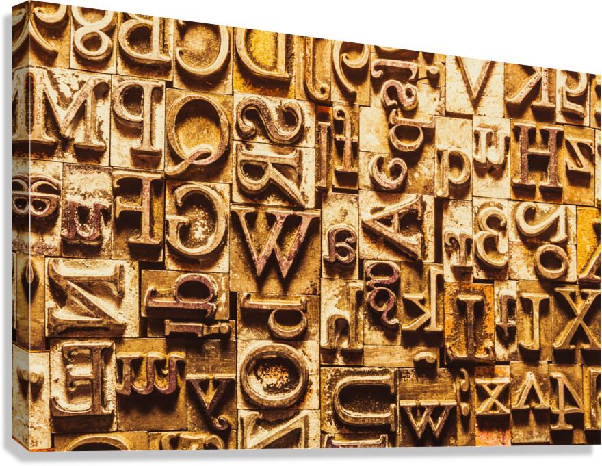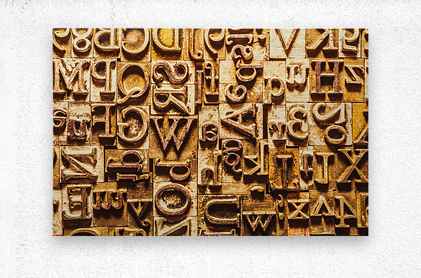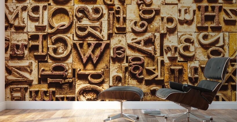 Historic background art on a alphabetized wall of rustic typesetting comms. Presstraction