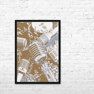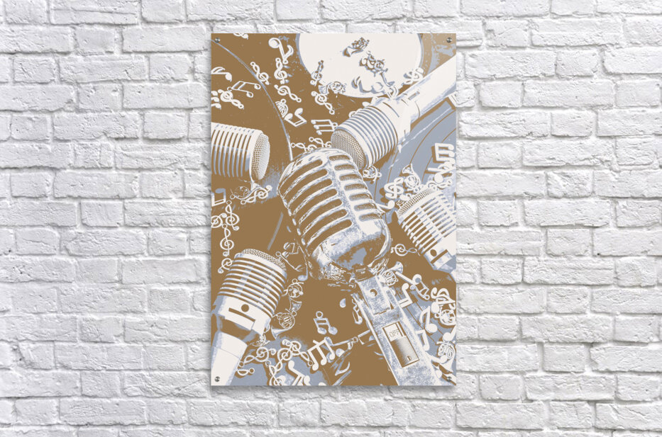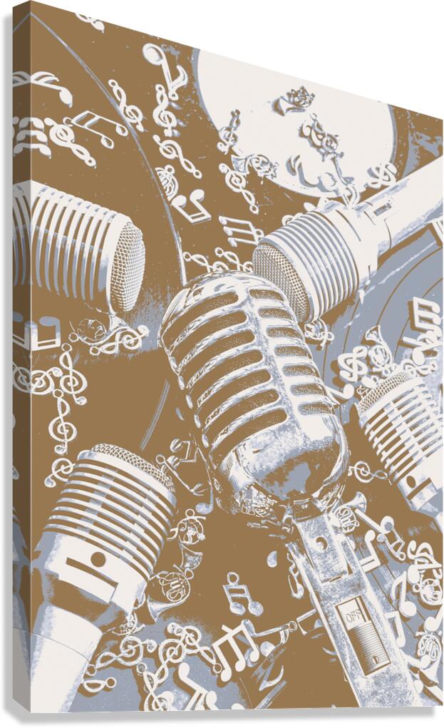 Pop art design in retro classics with old-fashioned microphones and songs in recording