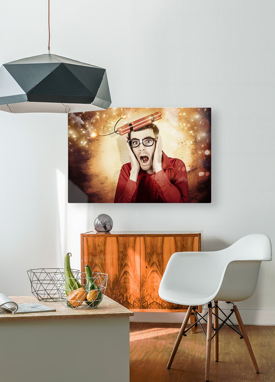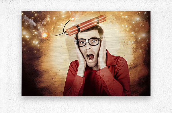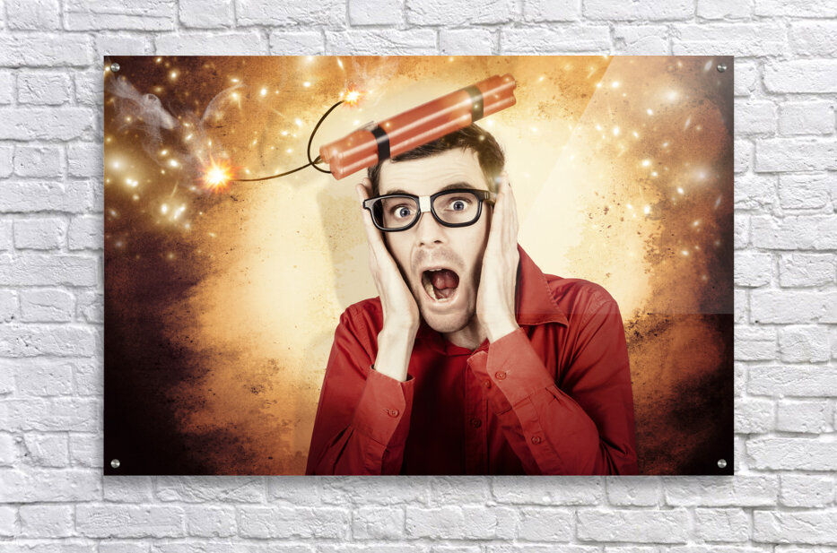 ABOUT THIS ARTWORK: NERD BUSINESS MAN SHOUTING OUT IN FEAR OF A BOMB