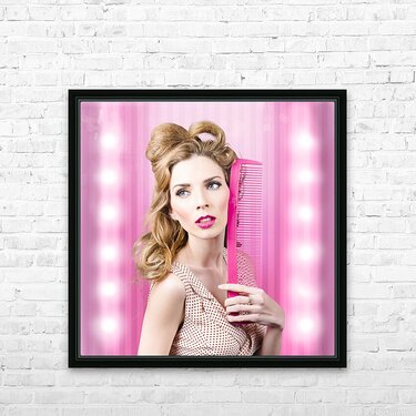 Sexy girl with brown hair style. Fashion faux pas Frame print